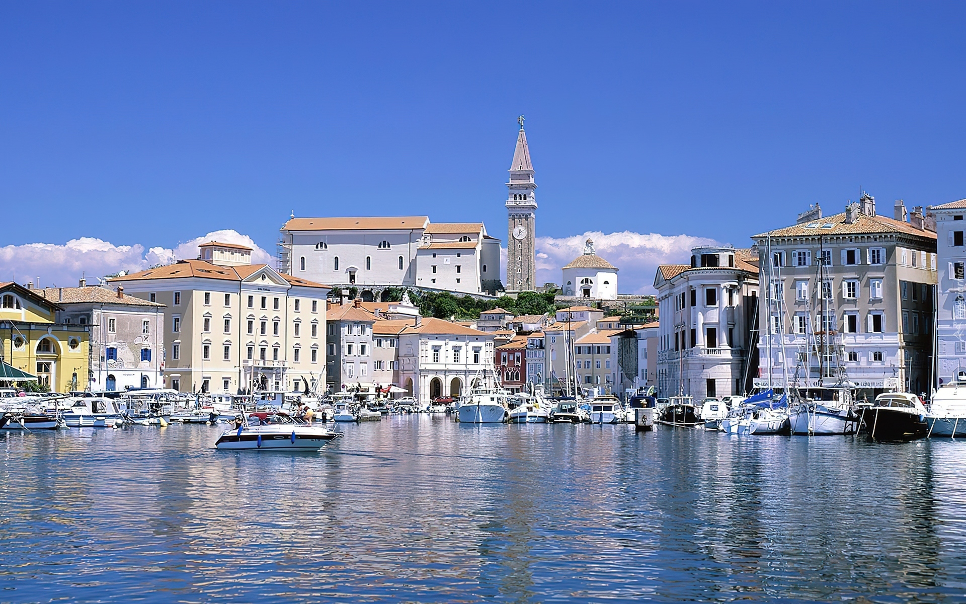 Edytor tapety: Przystań, Motorówki, Jachty, Domy, Słowenia
