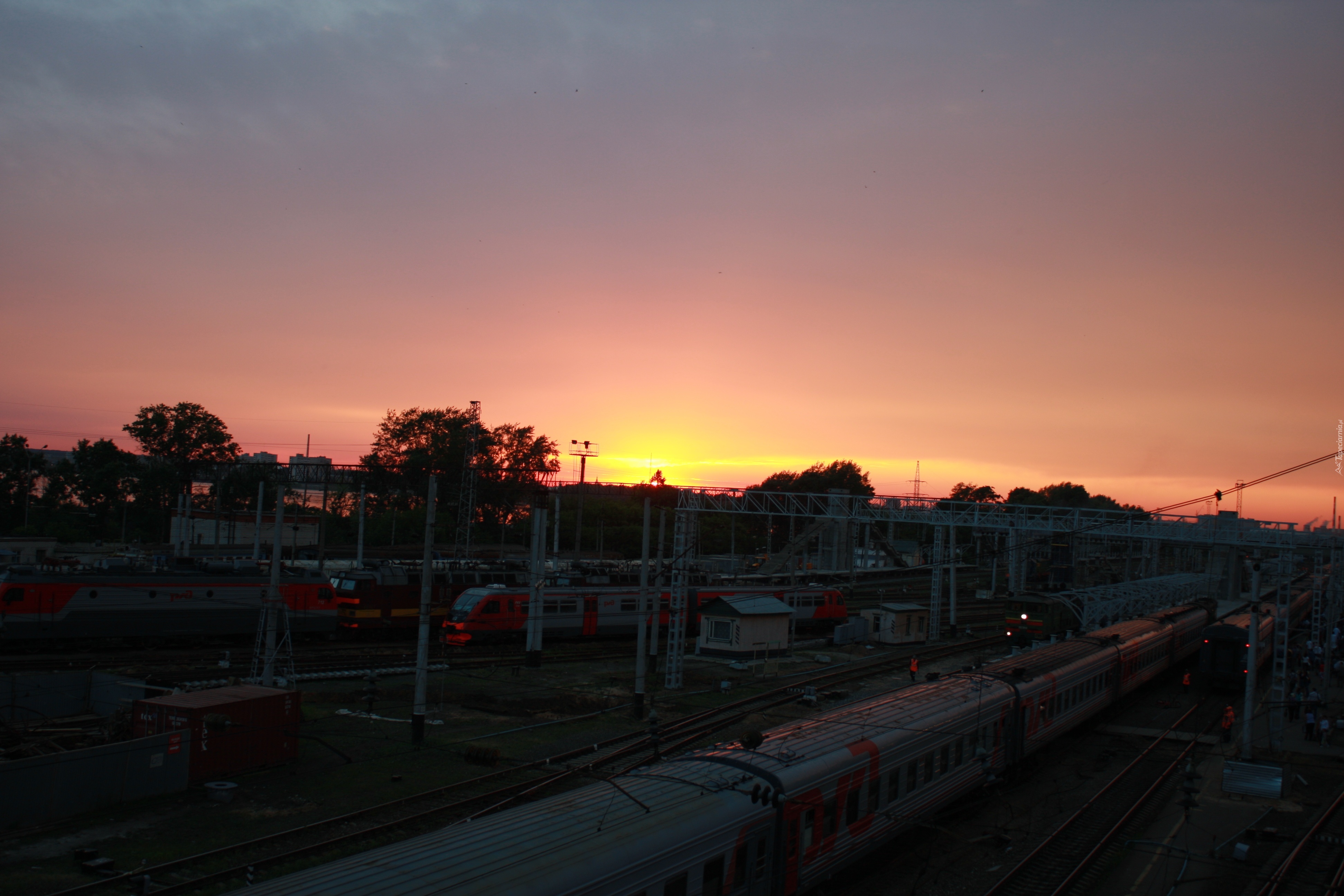 Edytor tapety: Pociągi, Zachód Słońca, Kolej