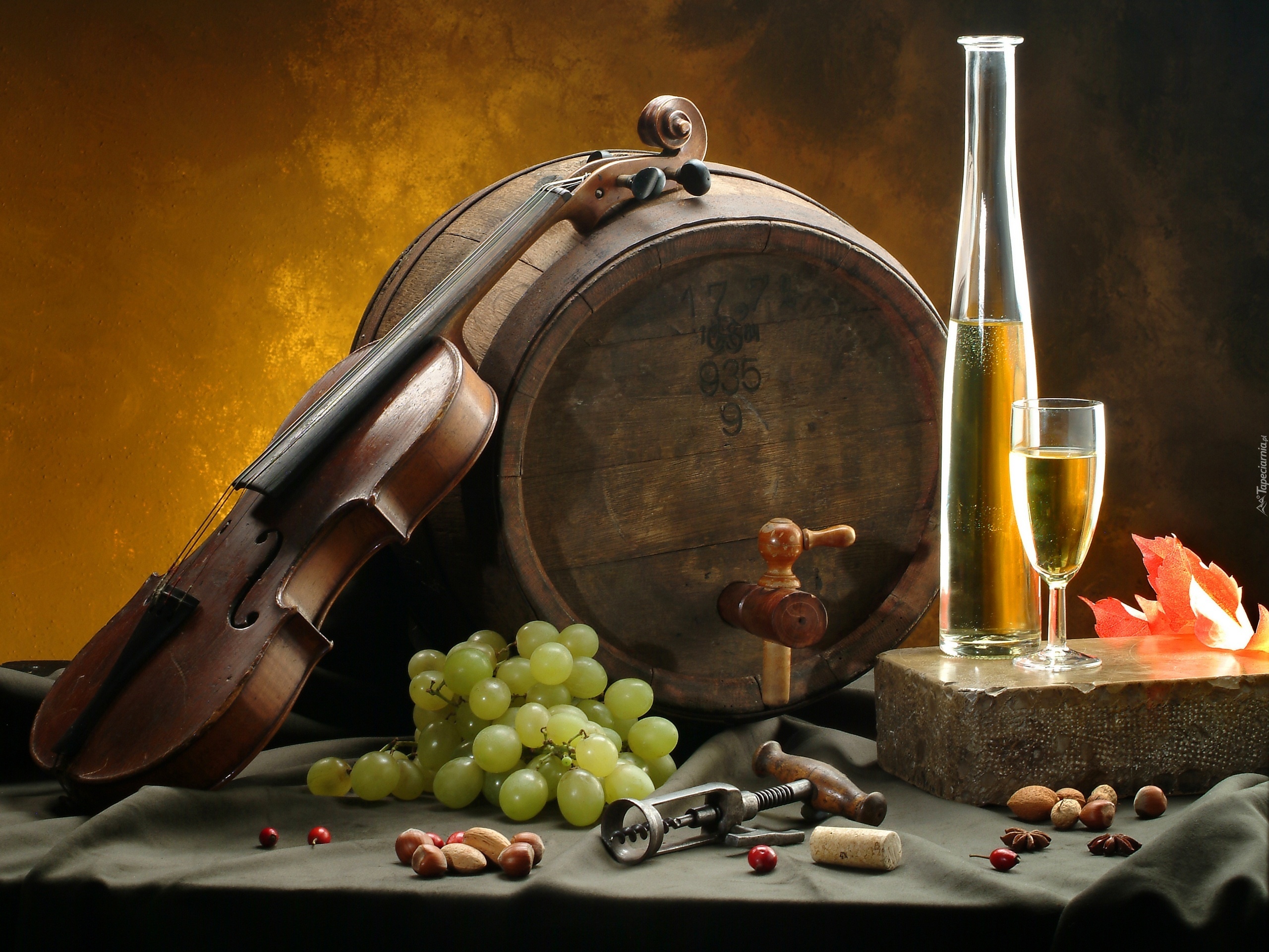 Edytor tapety: Beczka, Wino, Winogrona