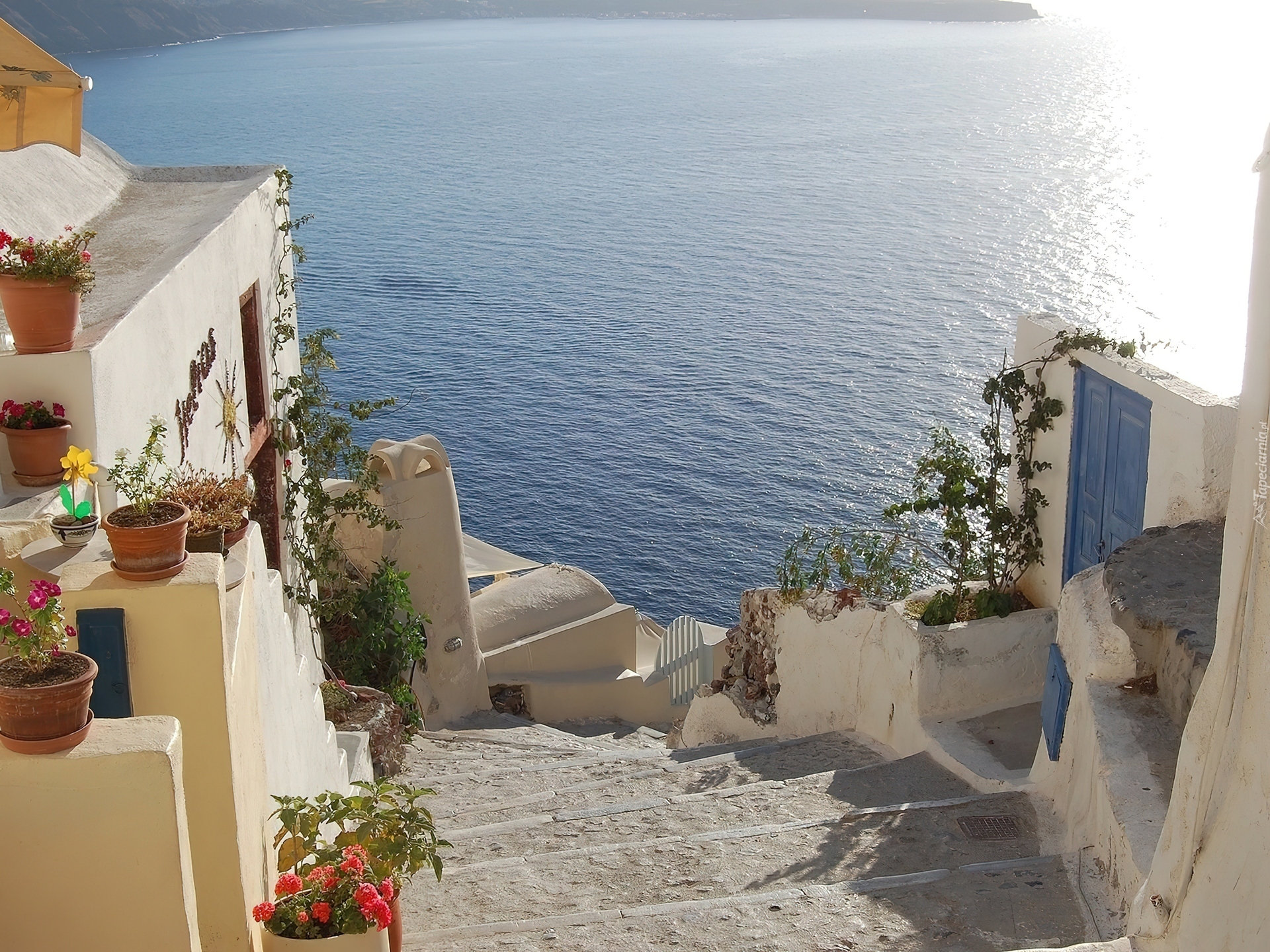 Edytor tapety: Santorini, Grecja, Schody, Morze