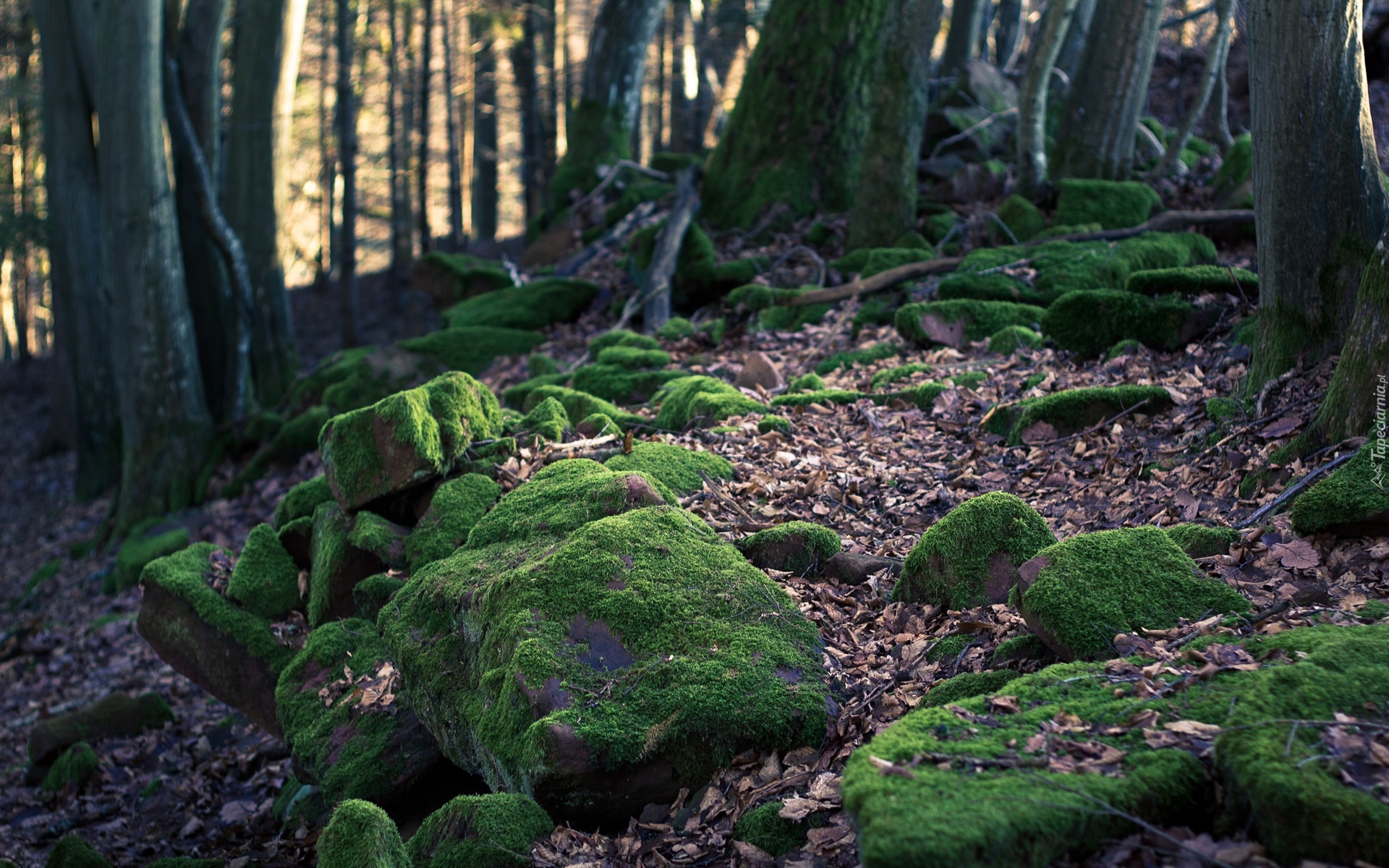 Edytor tapety: Las, Drzewa, Kamienie, Porośnięte, Mchem