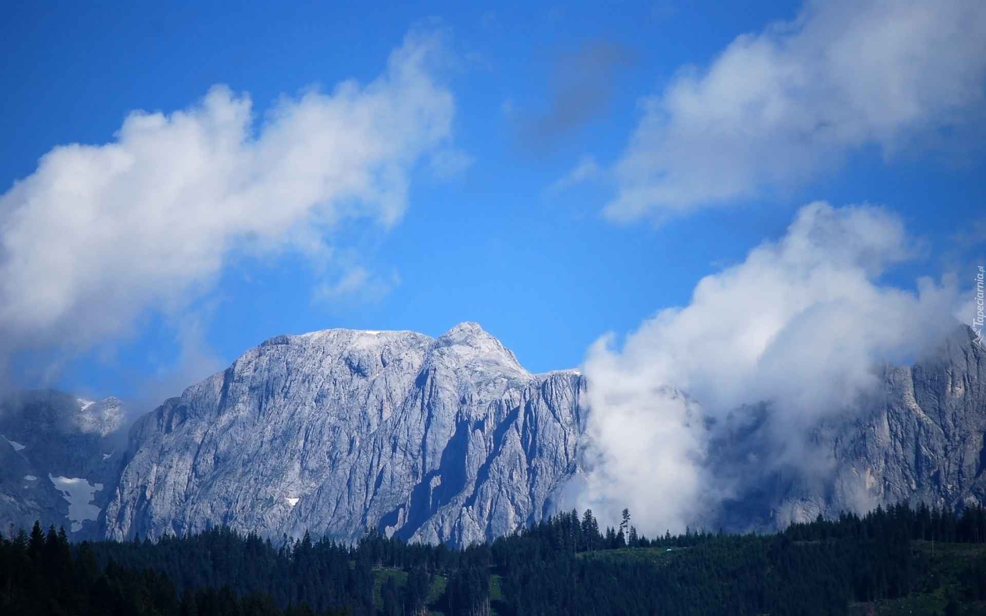 Edytor tapety: Las, Góry, Błękitne, Niebo, Chmury