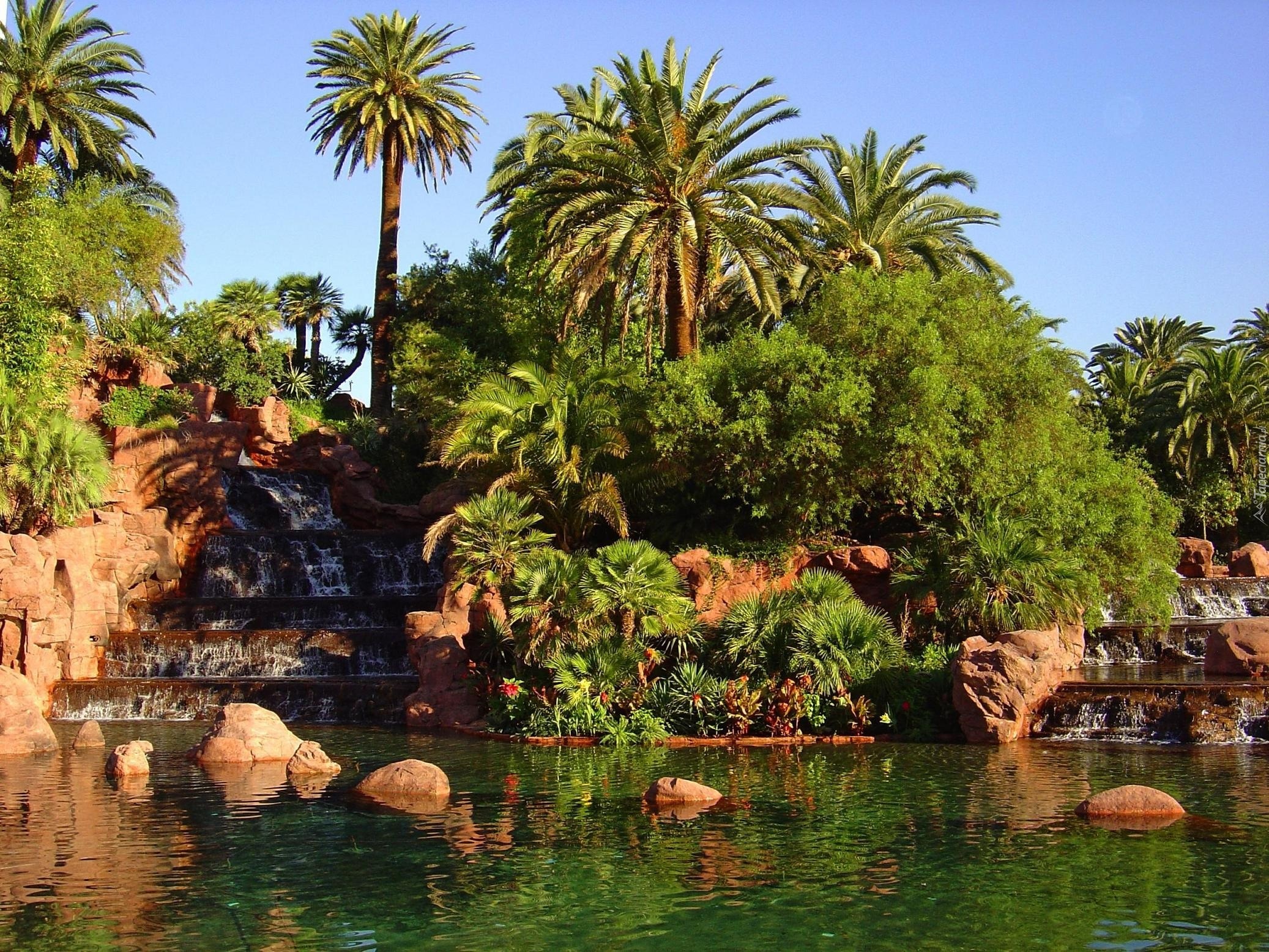 Edytor tapety: Ogród, Kaskady, Staw, Palmy