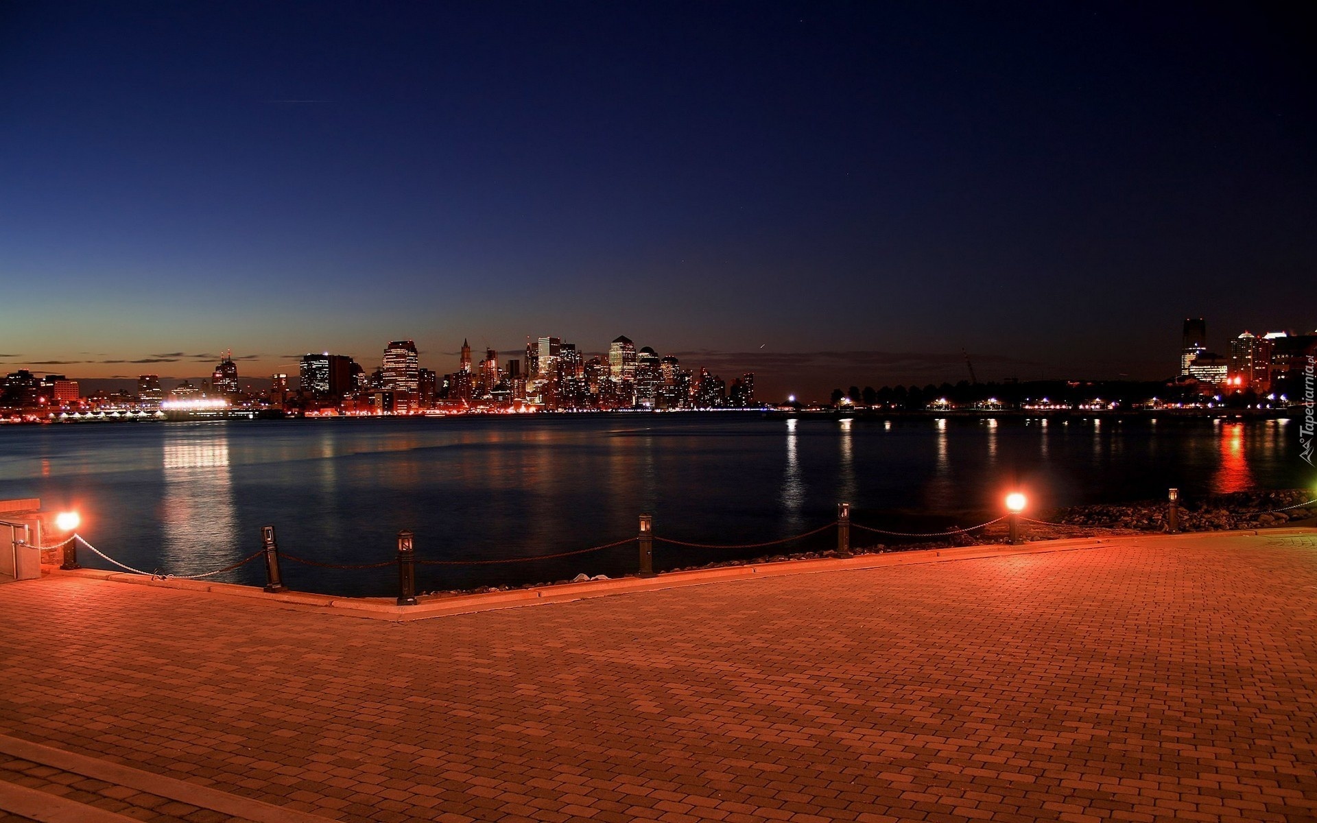 Edytor tapety: Panorama, Oświetlonego, Miasta