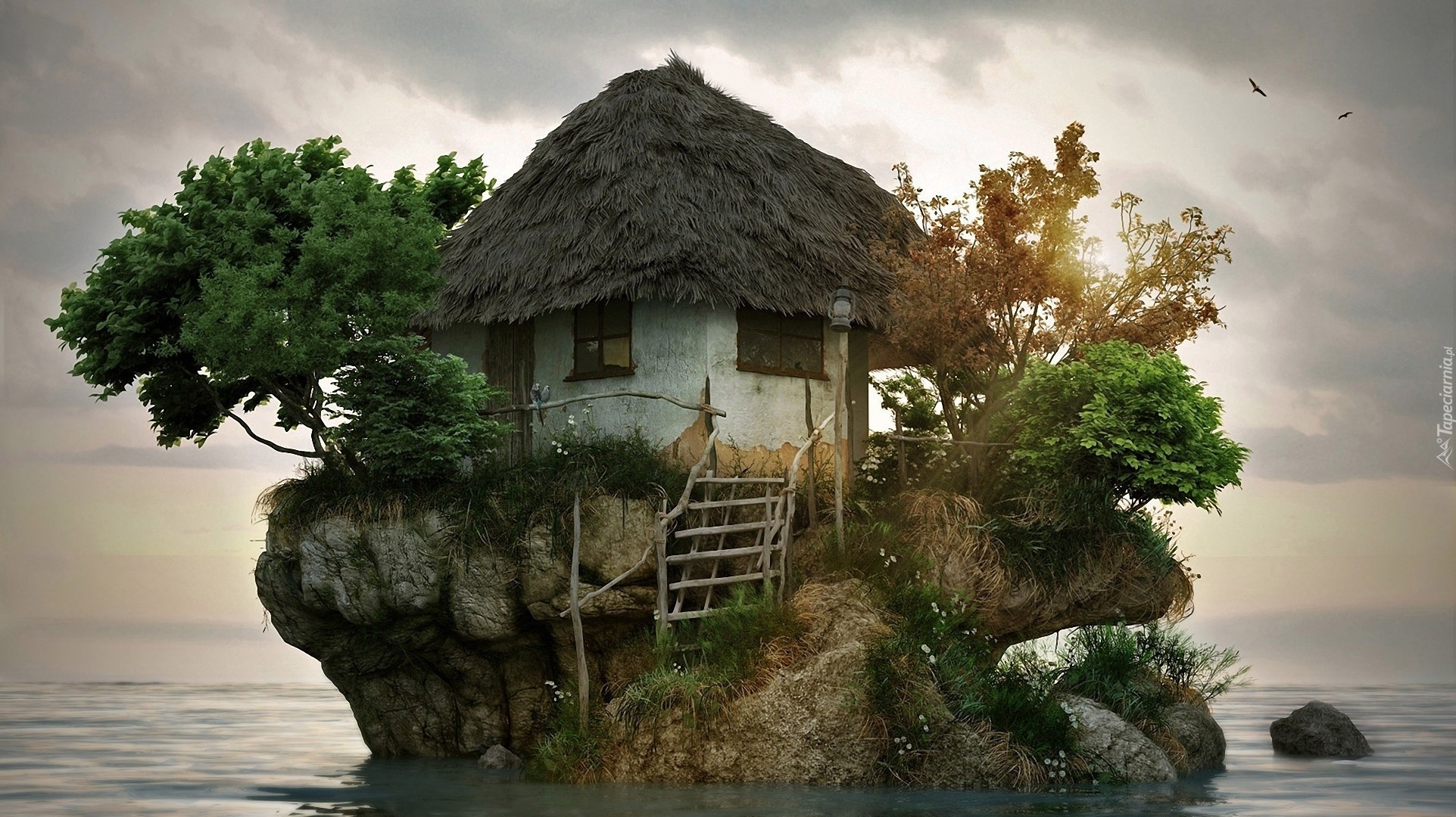 Edytor tapety: Chatka, Na, Wysepce, Morze
