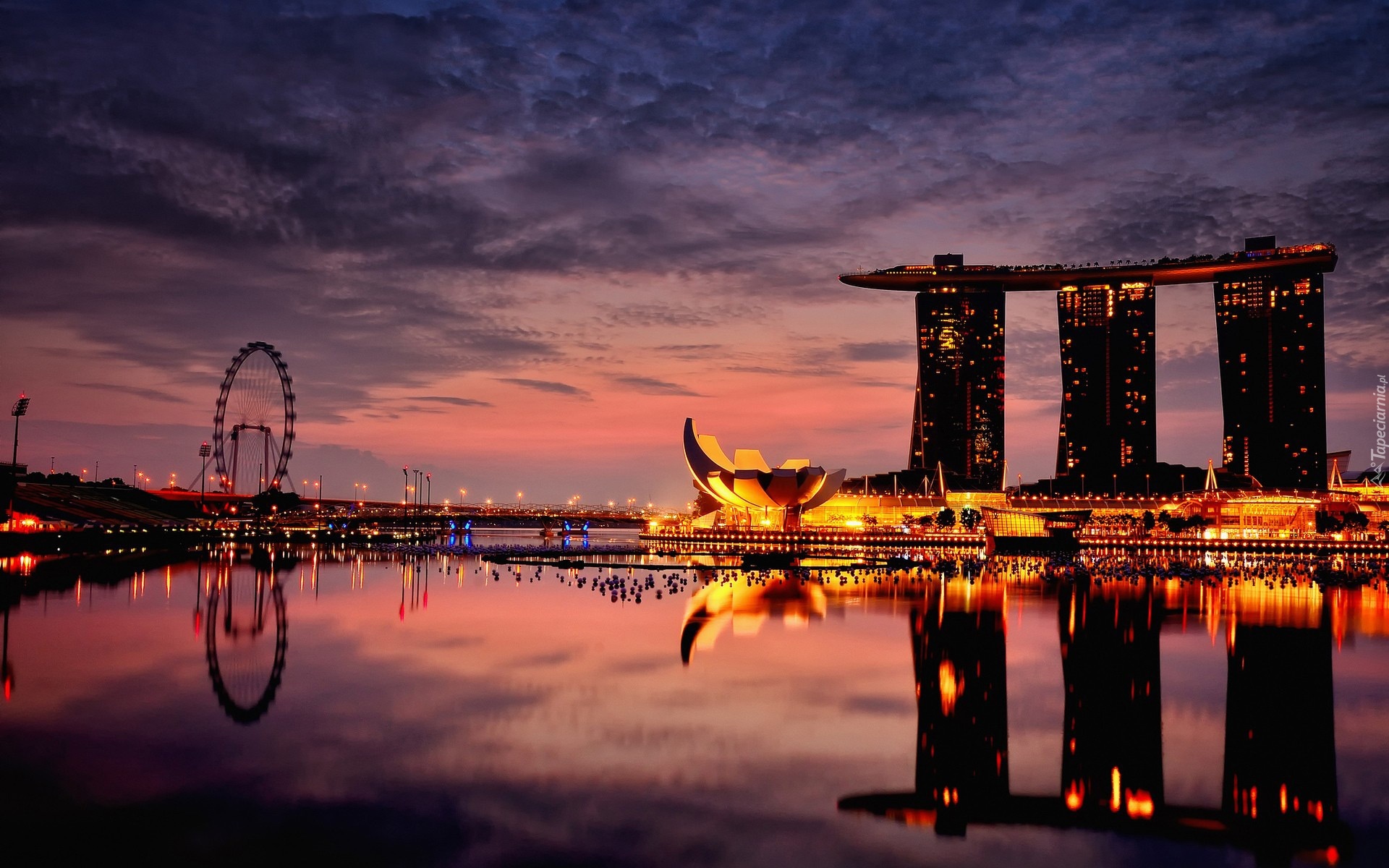 Edytor tapety: Hotel, Noc, Morze, Światła, Singapur