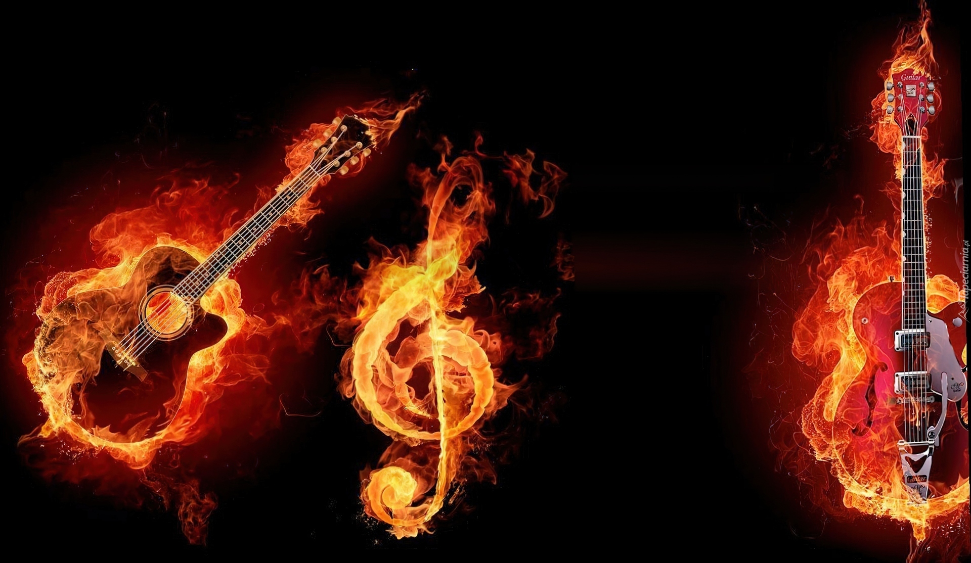 Edytor tapety: Ogień, Gitary, Klucz Wiolinowy