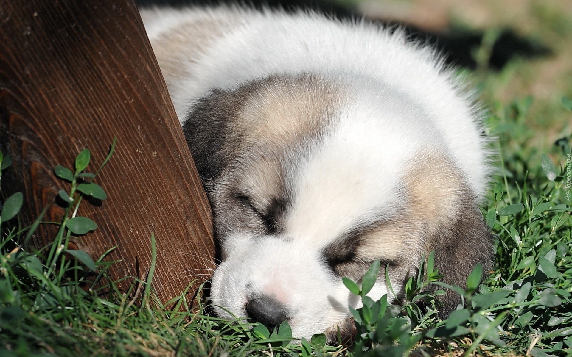 Edytor tapety: Śpiący, Piesek, Trawa
