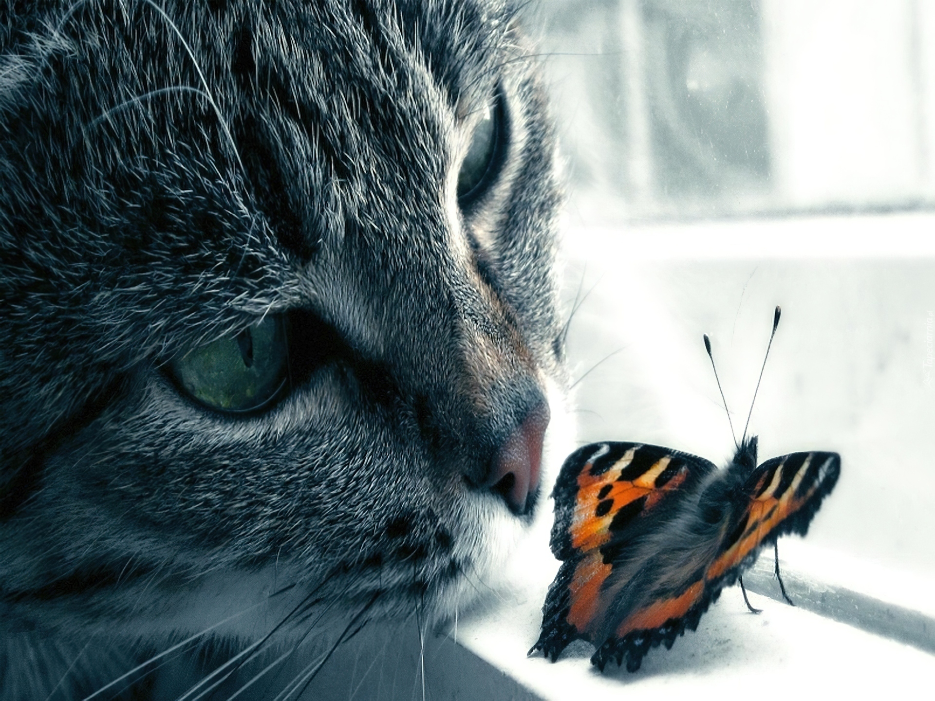 Edytor tapety: Kot, Motyl, Okno