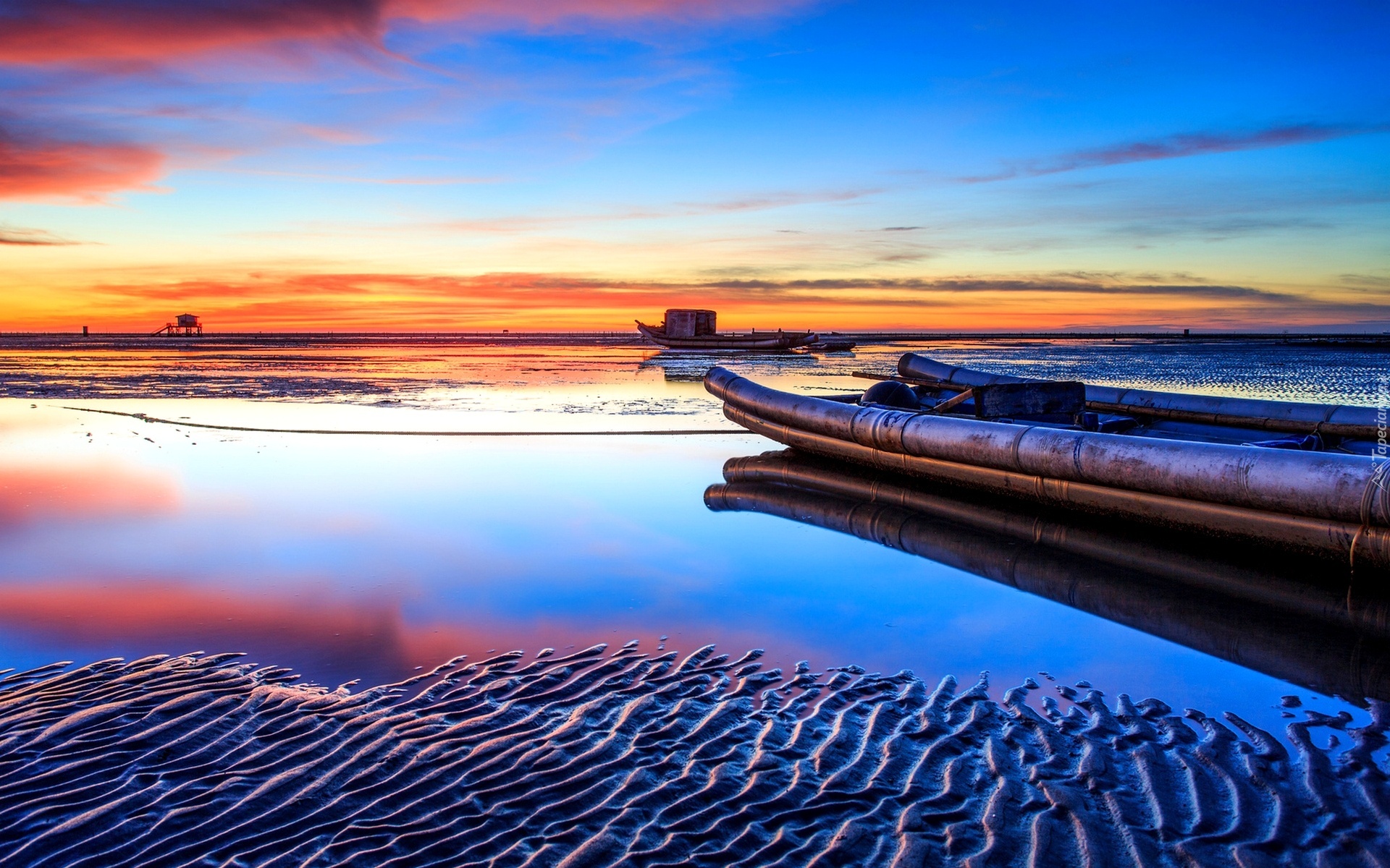 Edytor tapety: Rozlewisko, Łodzie, Zachód, Słońca