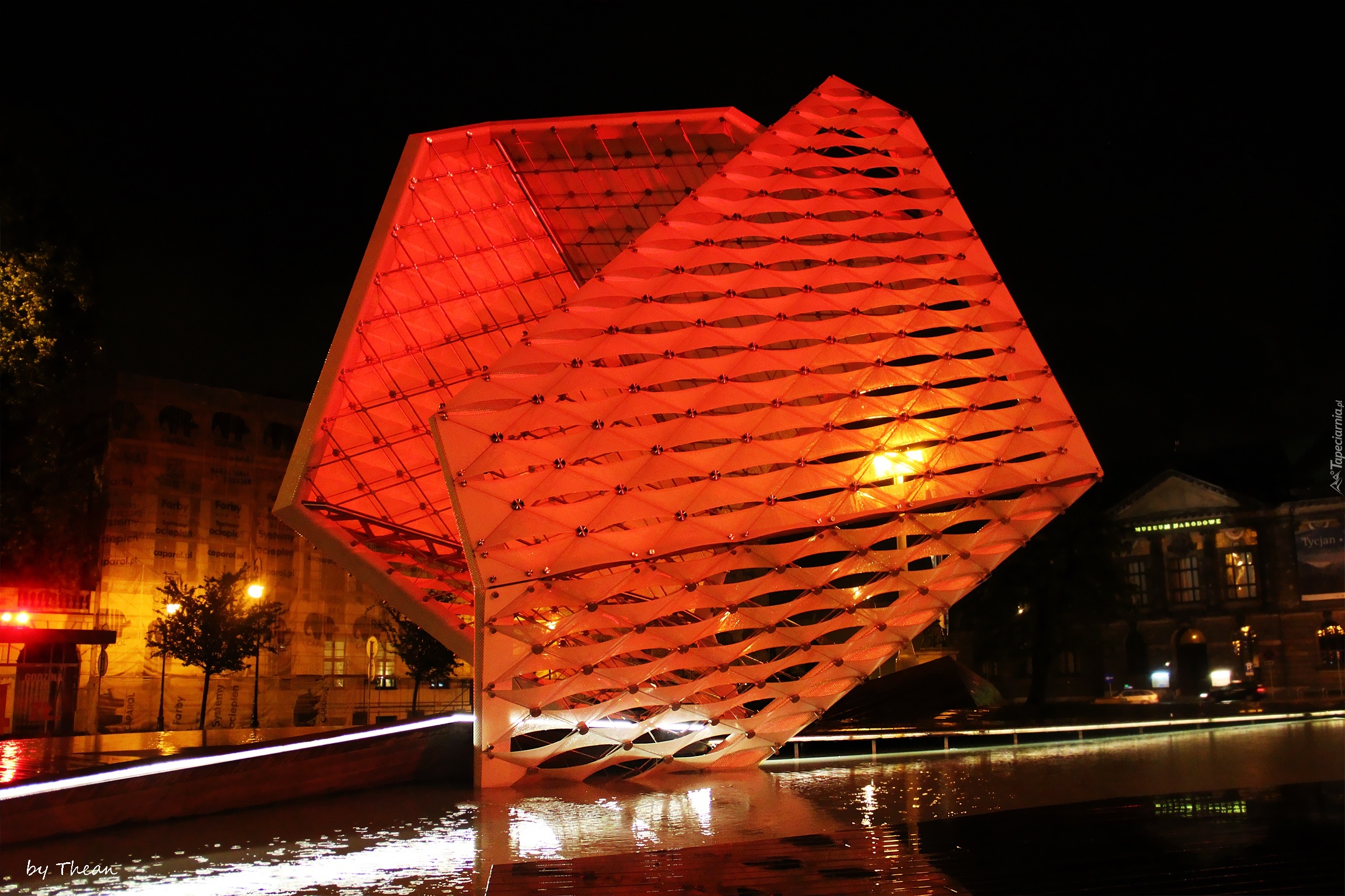 Edytor tapety: Fontanna, Wolności, Poznań, Noc, Czerwona