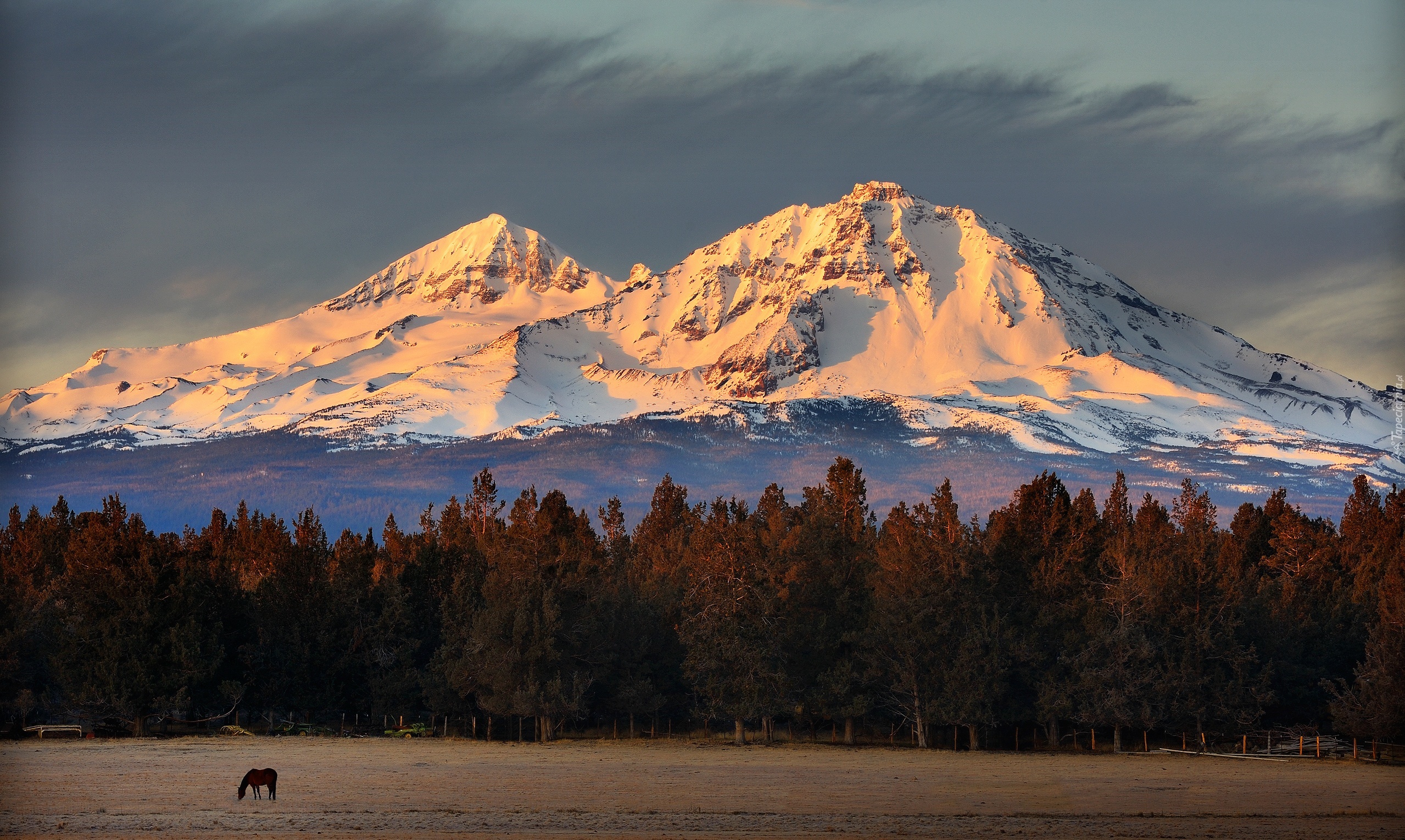 Edytor tapety: Góry, Las, Łąka, Koń
