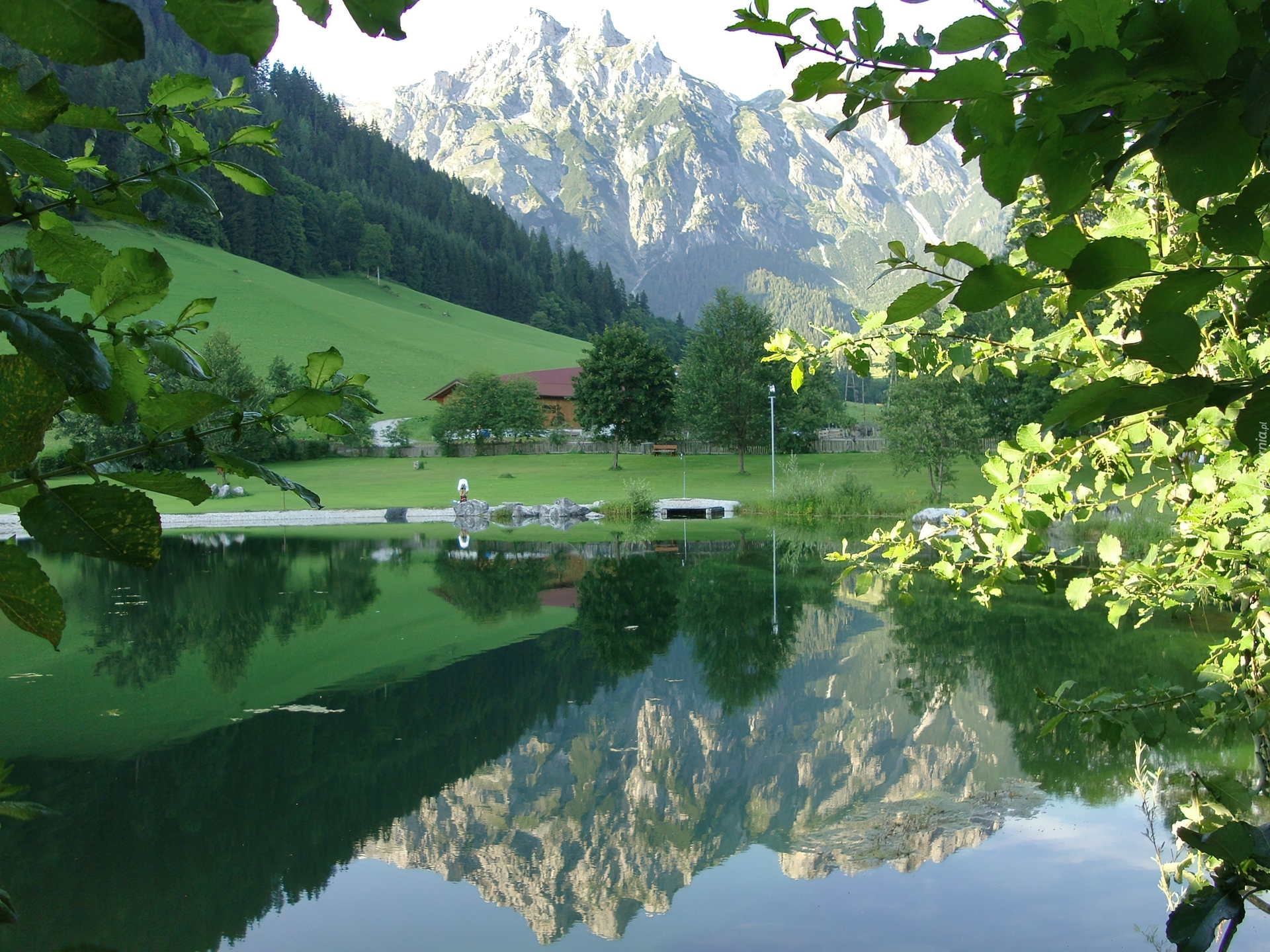 Edytor tapety: Góry, Jezioro, Drzewa, Odbicie
