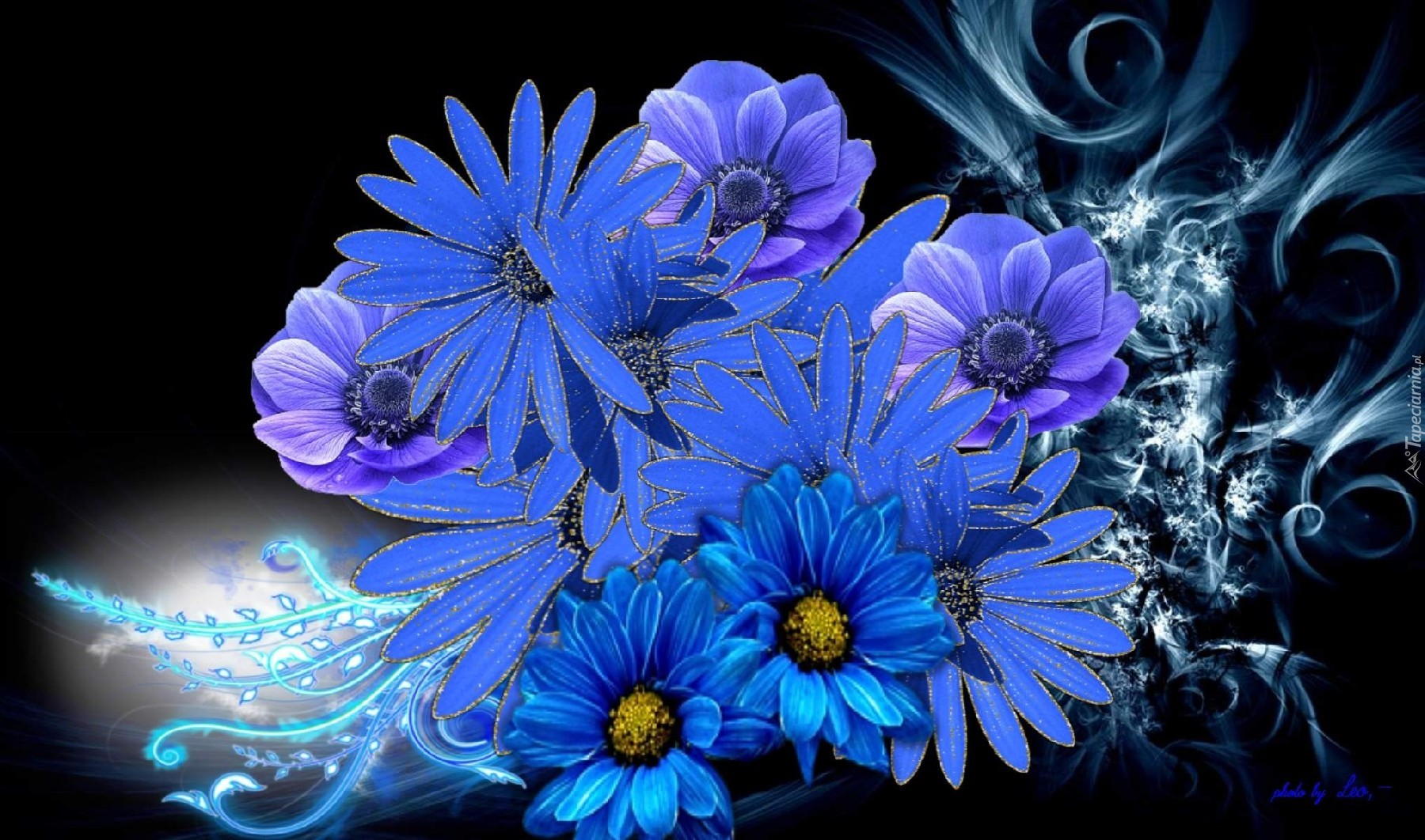 Edytor tapety: Niebieskie, Kwiaty, Grafika
