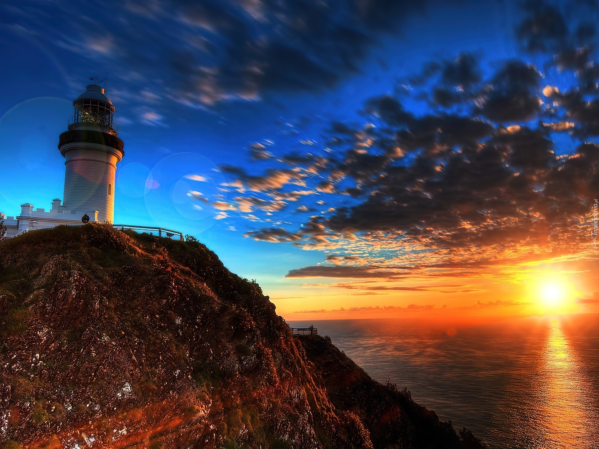 Edytor tapety: Latarnia morska, Zachód Słońca, Wzgórze