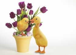 Edytor tapety: Kurczątko, Kaczusia, Bukiet, Tulipanów, Jajka