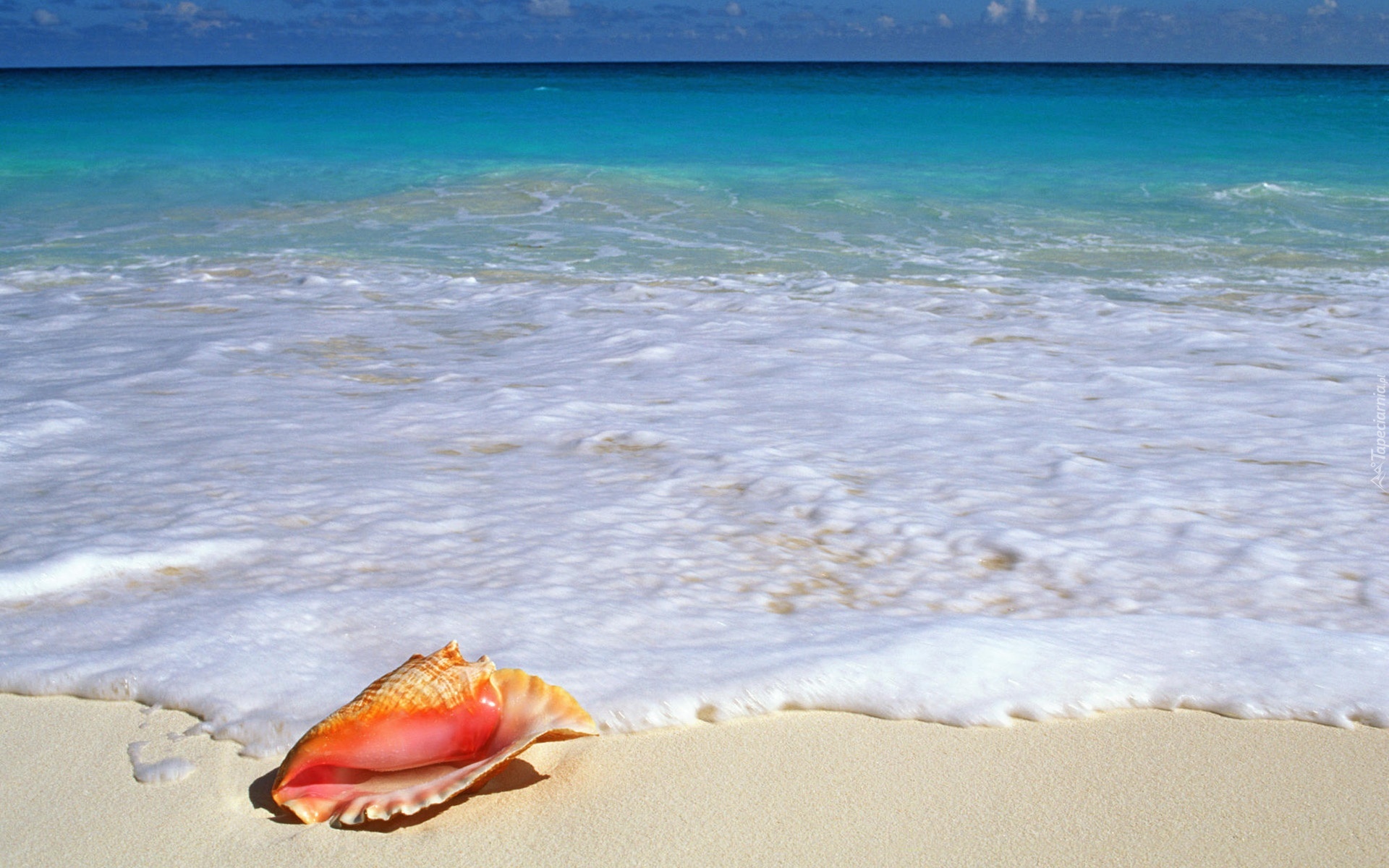 Edytor tapety: Ocean, Muszla, Piasek, Piana