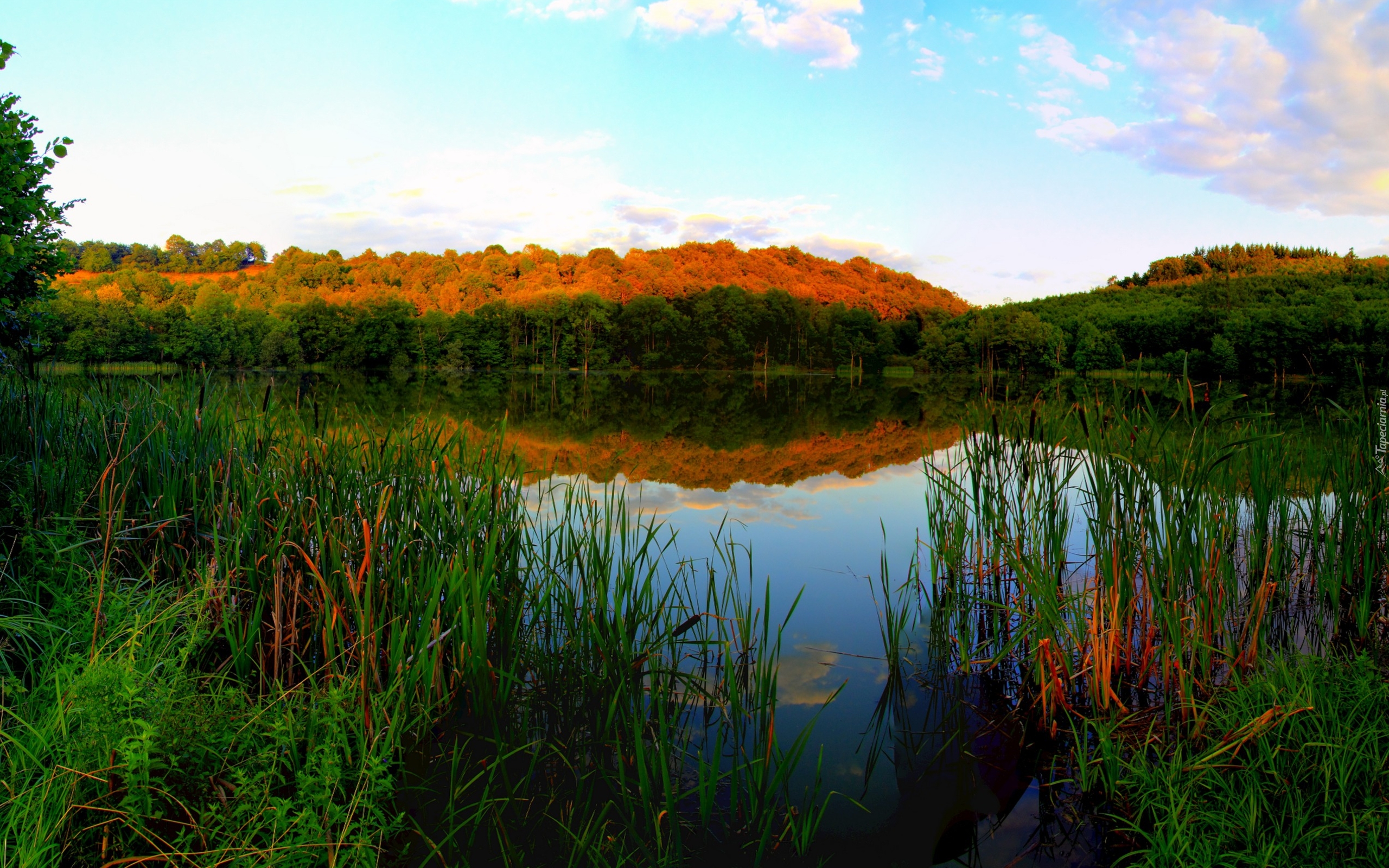 Edytor tapety: Jezioro, Trawy, Las