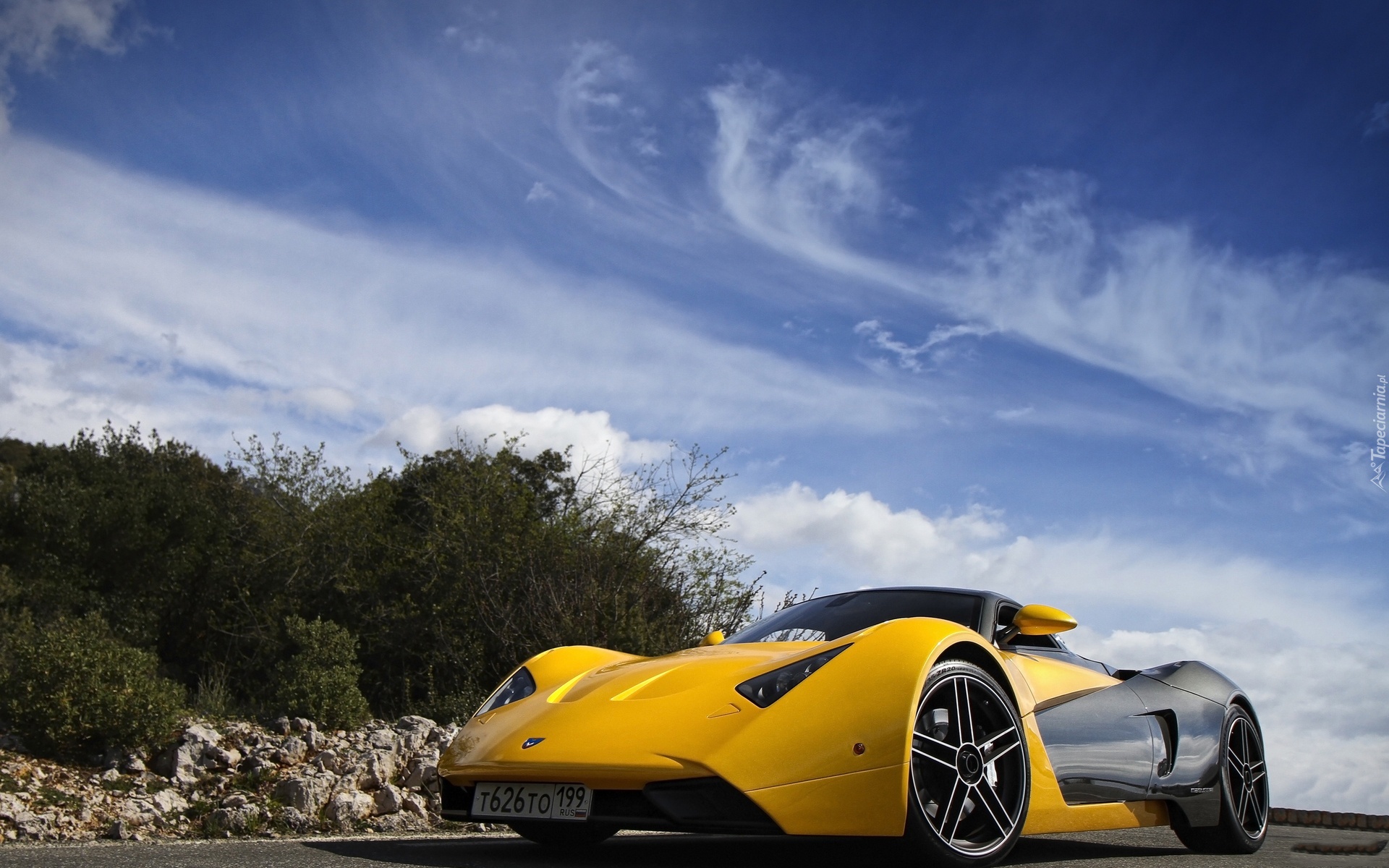 Edytor tapety: Żółto, Czarne, Ferrari, Droga, Krzewy, Niebo