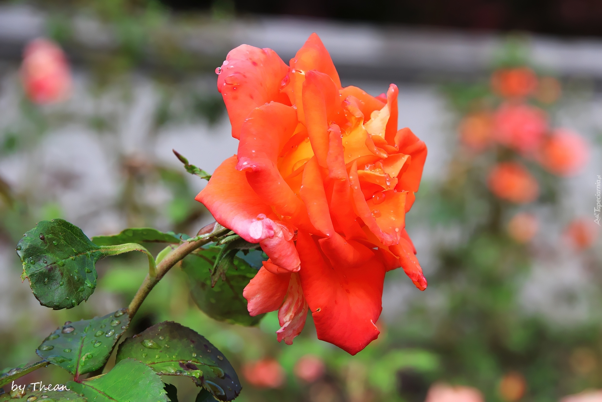 Edytor tapety: Róża, Herbaciana, Krople, Deszczu