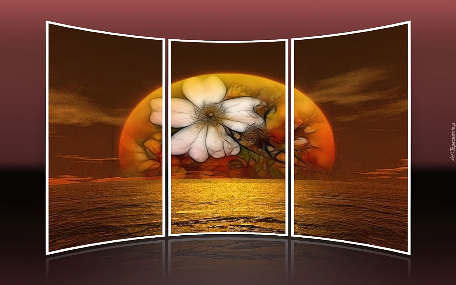 Edytor tapety: Zachód, Słońca, Morze, Okno, Kwiat