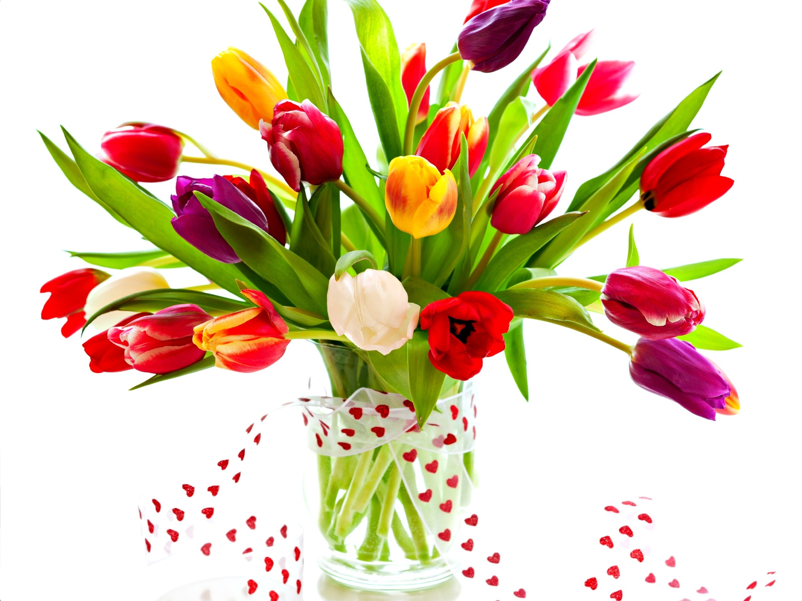 Edytor tapety: Bukiet, Kolorowych, Tulipanów, Wstążka, Serduszka