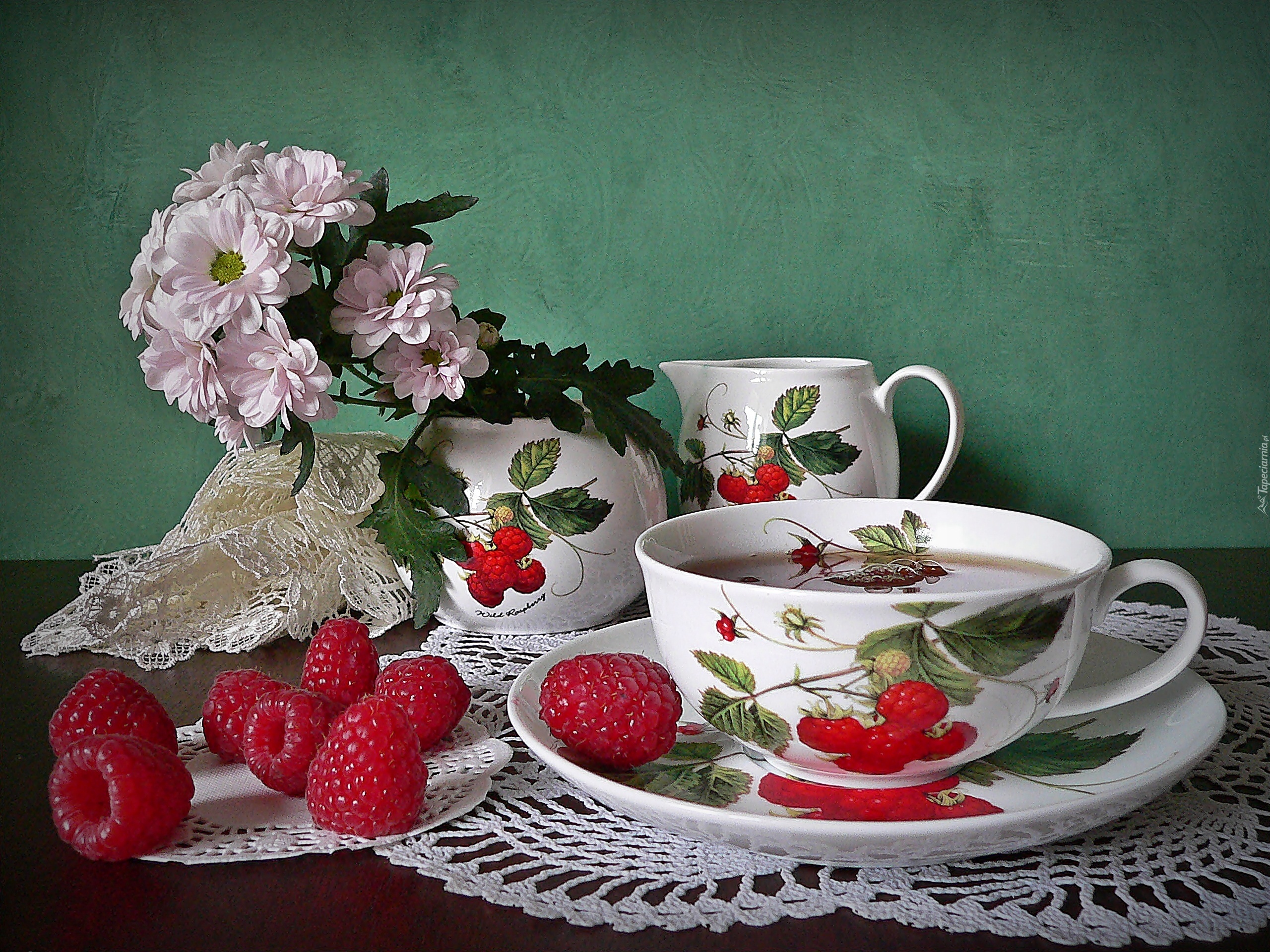 Edytor tapety: Bukiecik, Kwiatów, Zestaw, Do, Herbaty, Malinki