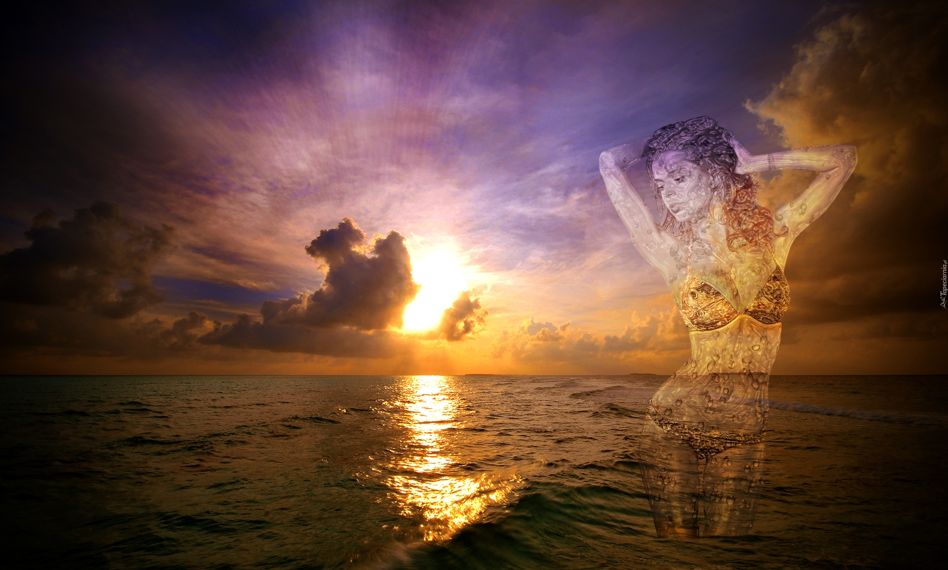 Edytor tapety: Zachód, Słońca, Morze, Kobieta, Art