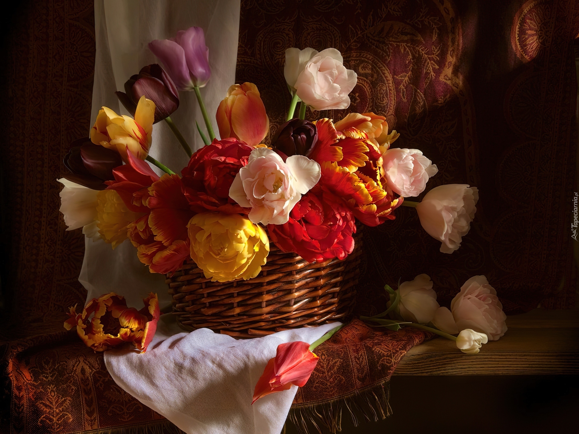 Edytor tapety: Tulipany, Bukiet, Kosz
