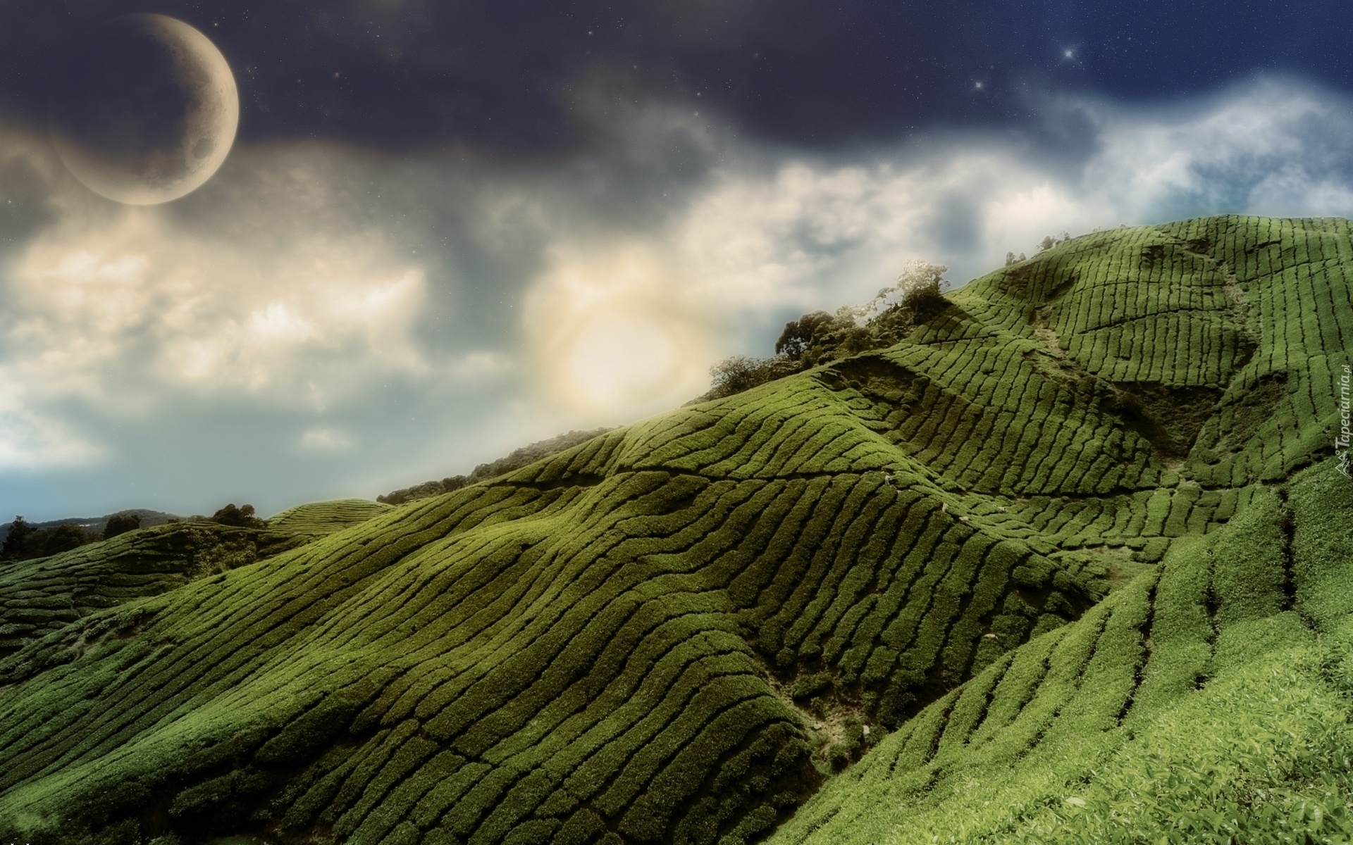 Edytor tapety: Zbocze, Góry, Pochmurne, Niebo, Planeta