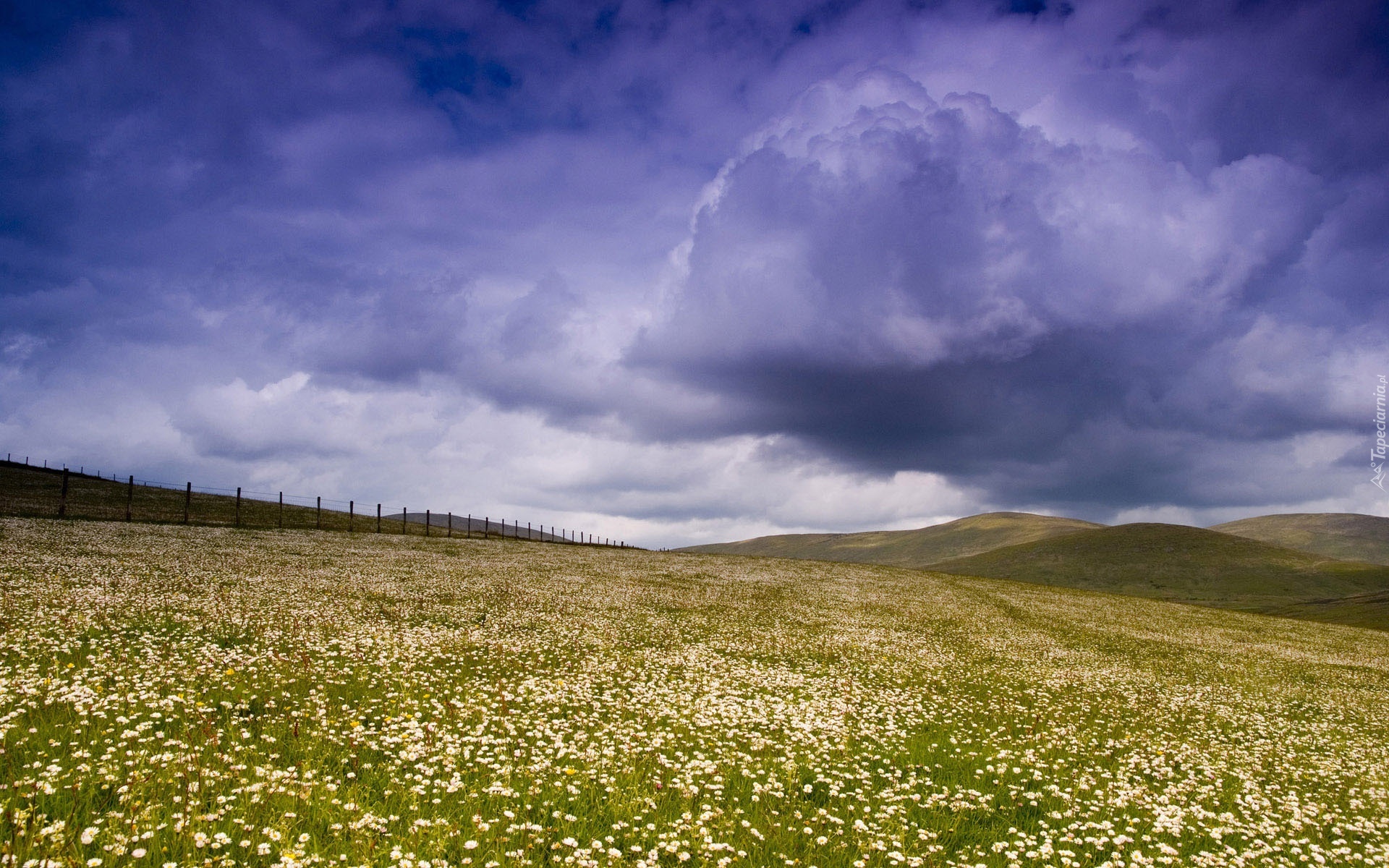 Edytor tapety: Kwiecista, Łąka, Ogrodzenie, Chmury
