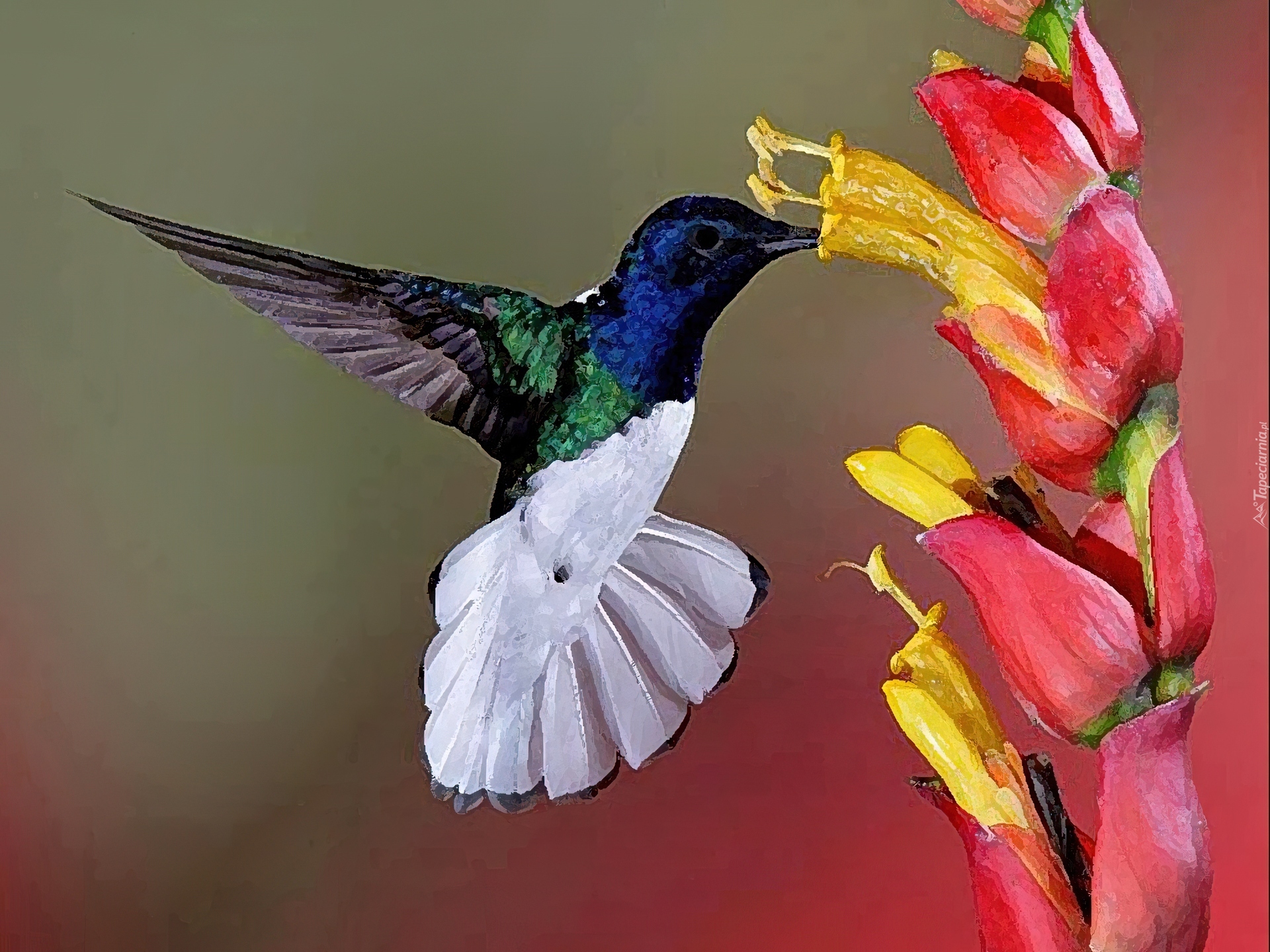 Edytor tapety: Koliber, Skrzydła, Kwiat, Grafika