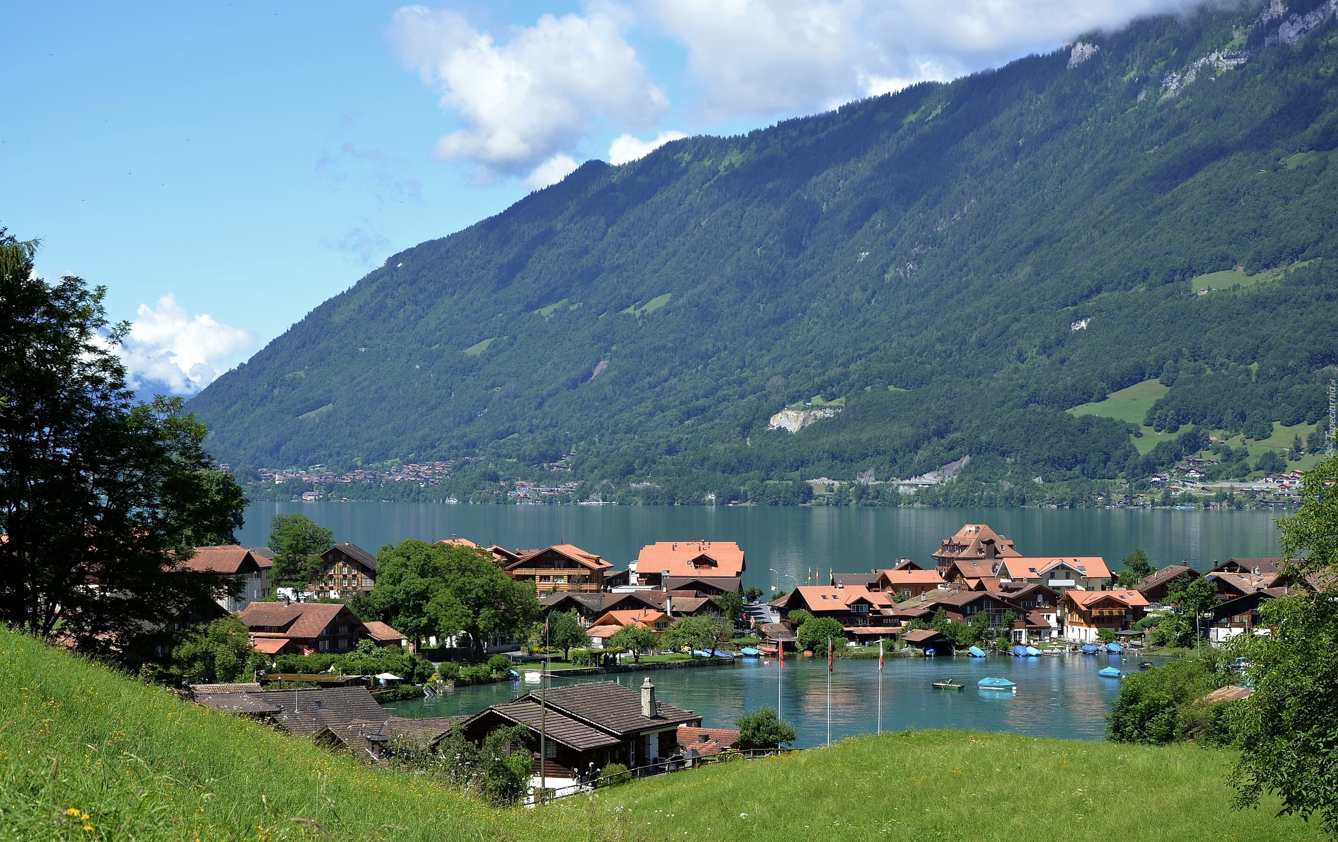 Edytor tapety: Góry, Lasy, Jezioro, Miasto, Iseltwald