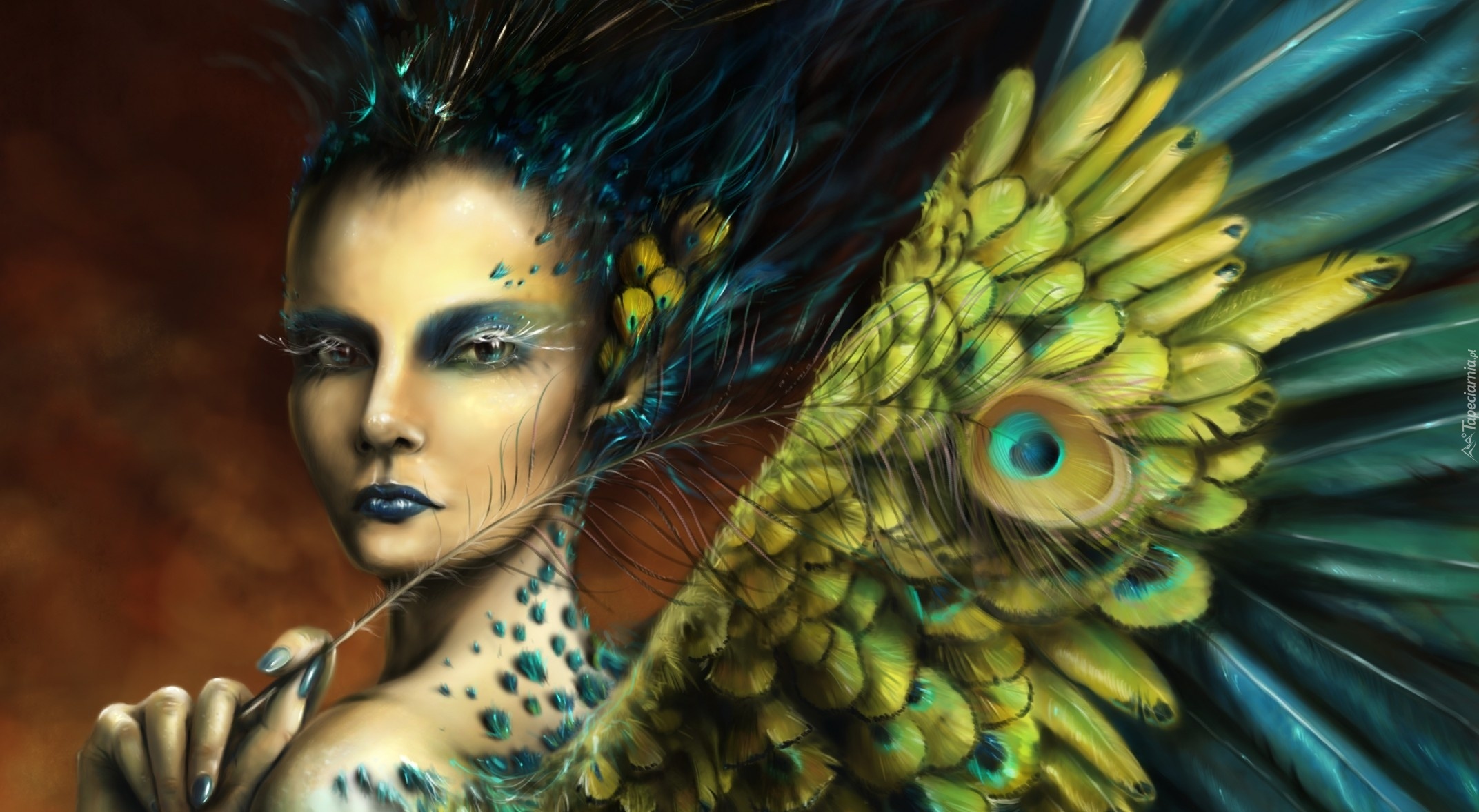 Edytor tapety: Kobieta, Skrzydła, Pawie, Pióro