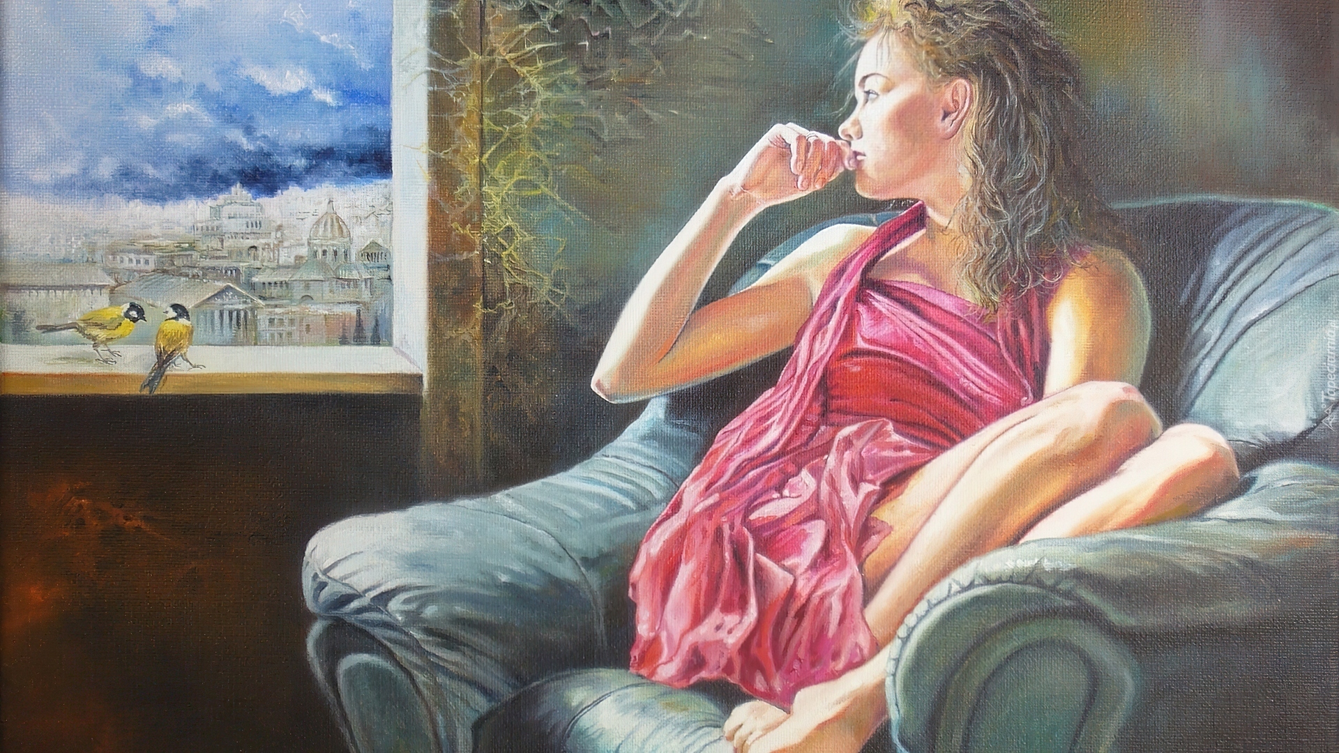 Edytor tapety: Obraz, Włodzimierza Kuklińskiego, Kobieta, Fotel