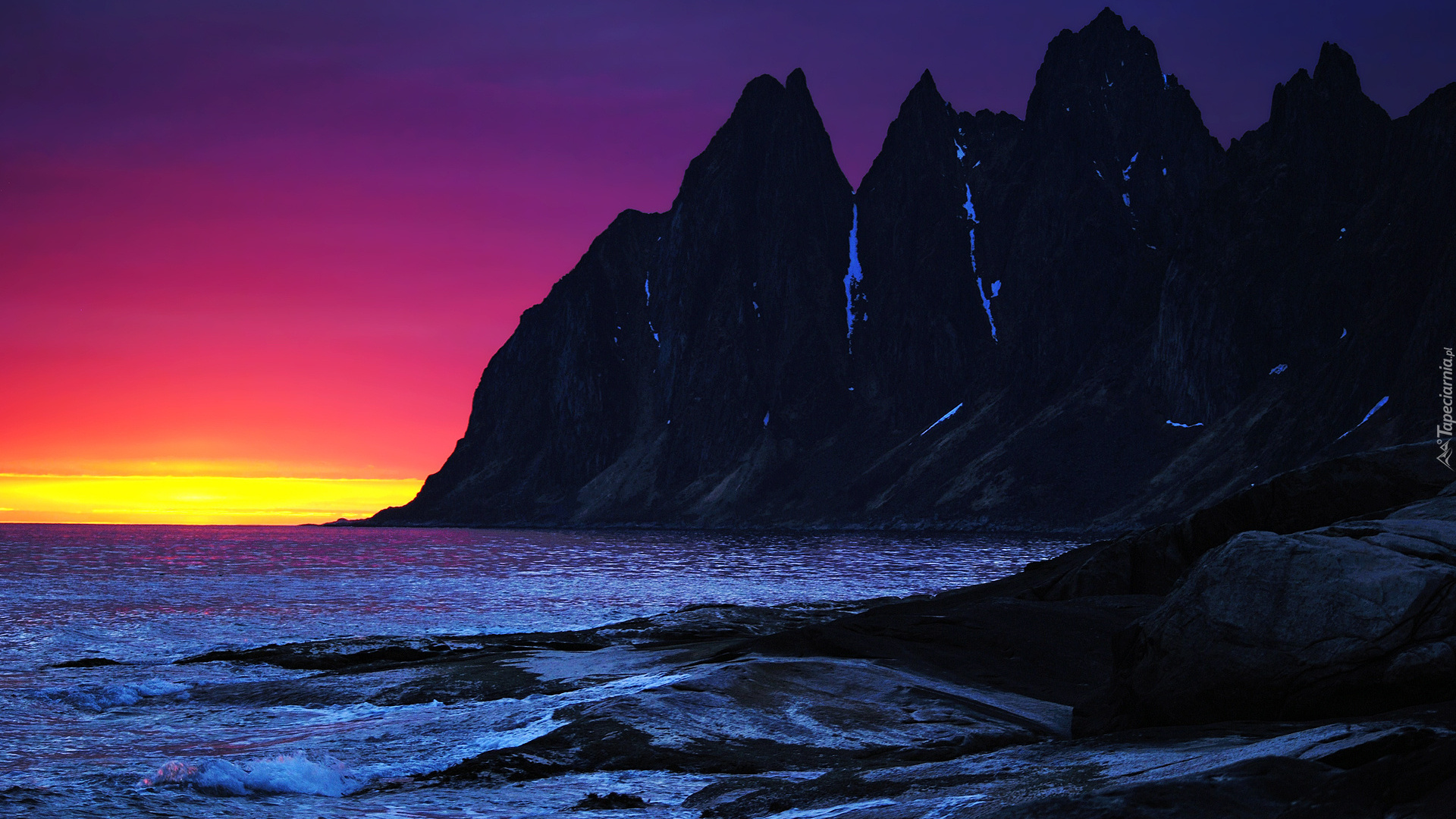 Edytor tapety: Morze, Skały, Zachód, Słońca