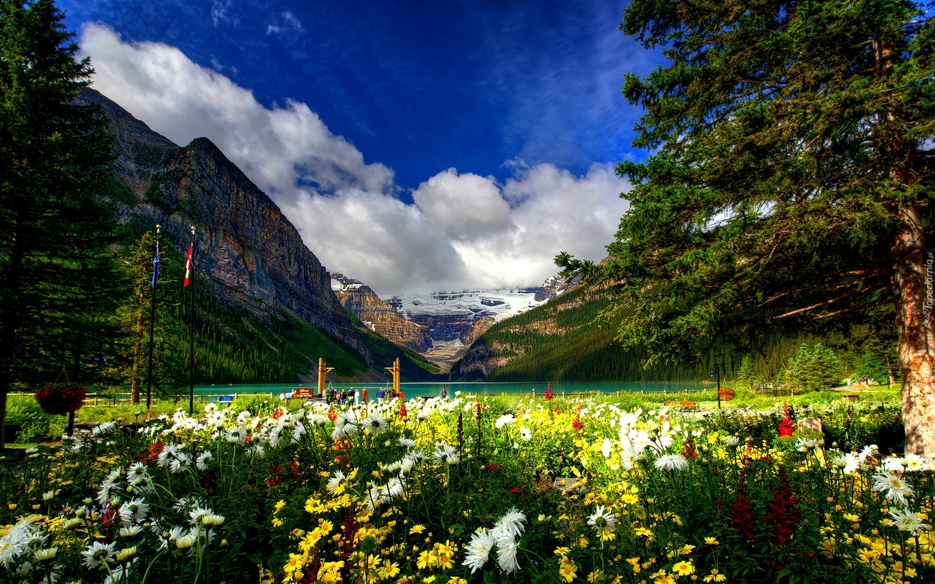 Edytor tapety: Góry, Jezioro, Park, Kolorowe, Kwiaty