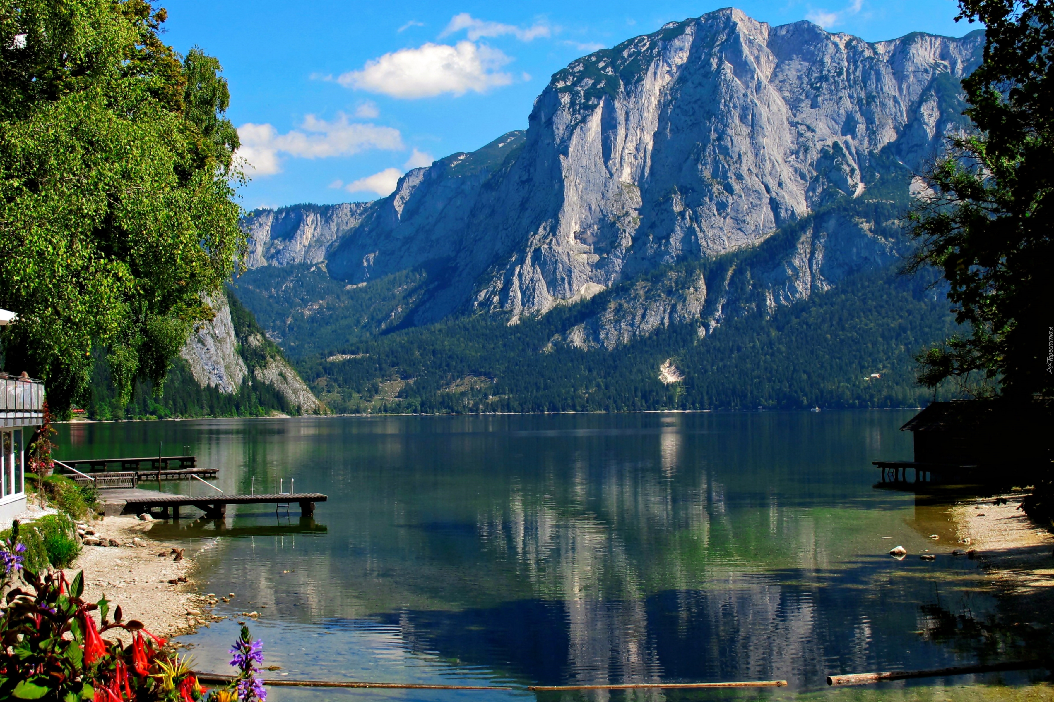 Edytor tapety: Góry, Jezioro, Pomosty, Kwiaty