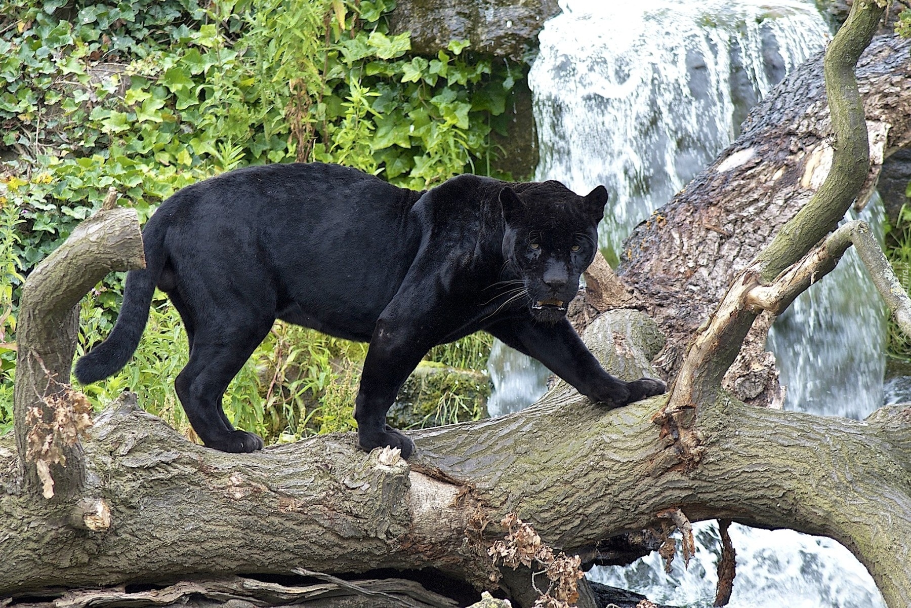 Edytor tapety: Czarna, Pantera, Drzewo, Wodospad