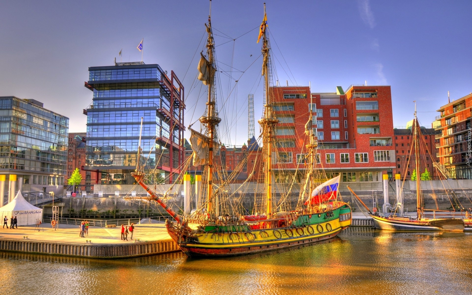 Edytor tapety: Statek, Żaglowy, Budynki, Port