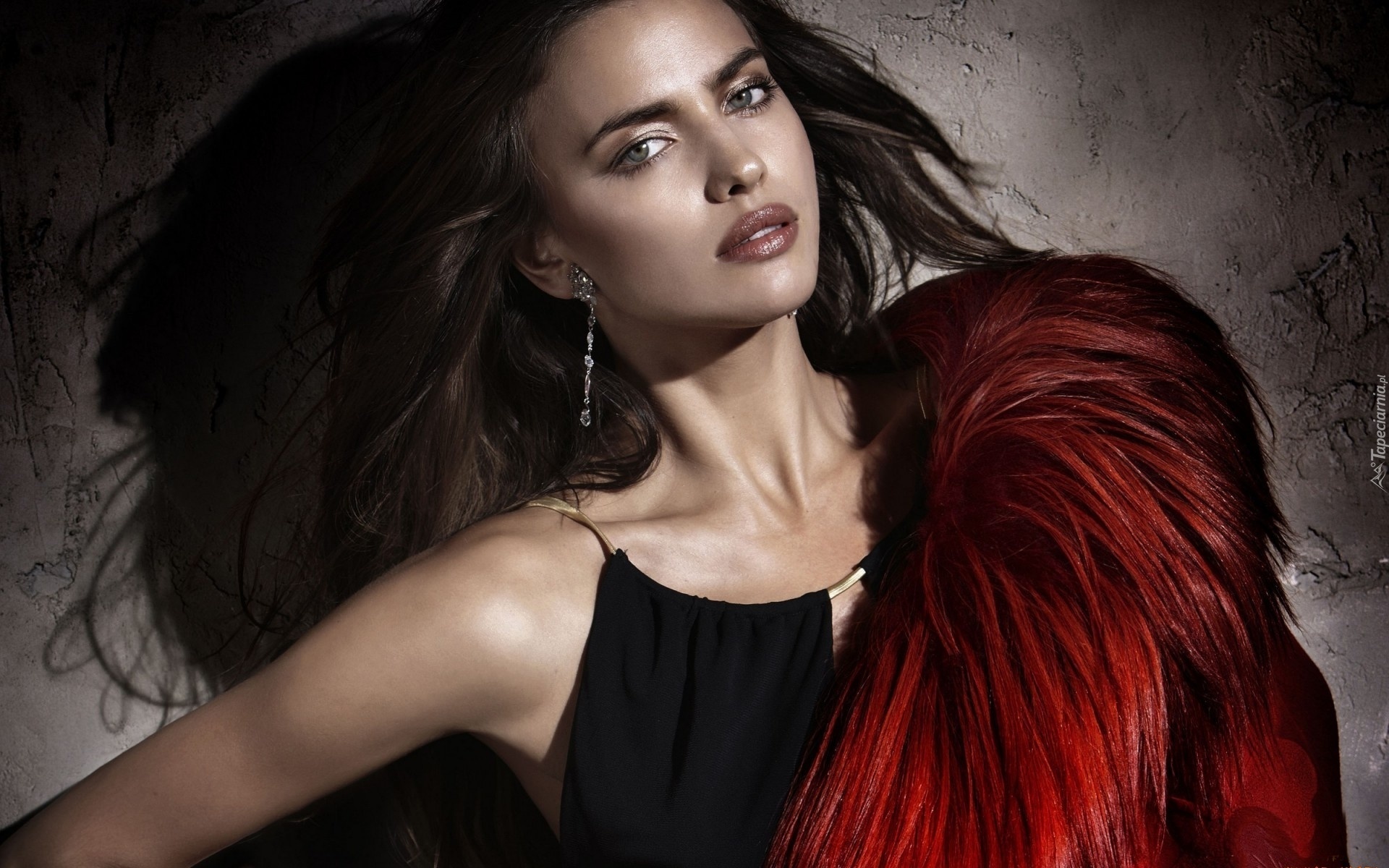 Edytor tapety: Irina Shayk, Kolczyki, Futro
