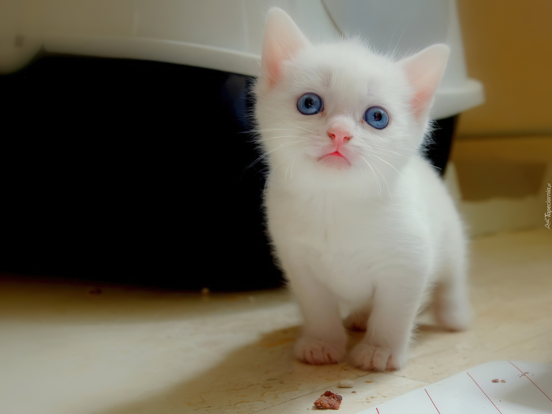 Edytor tapety: Koteczek, Biały, Niebieskie, Oczka