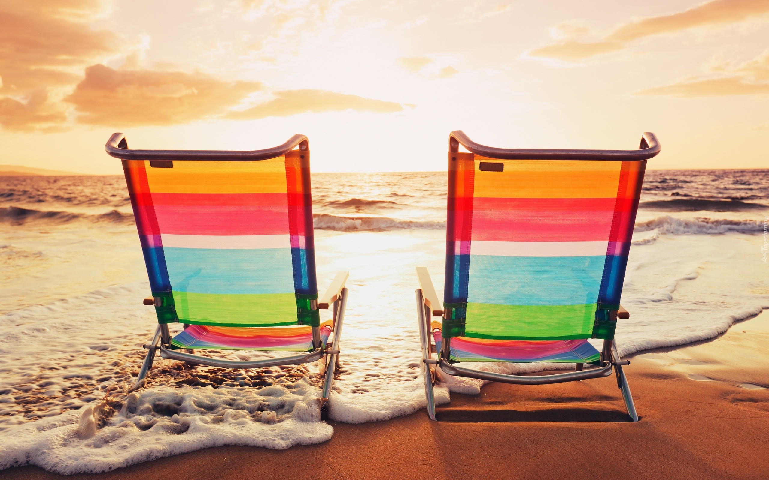 Edytor tapety: Niebo, Morze, Plaża, Leżaki, Wakacje