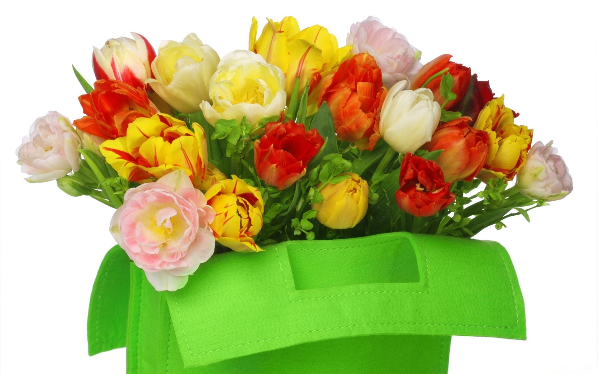Edytor tapety: Zielona, Torba, Kolorowe, Tulipany