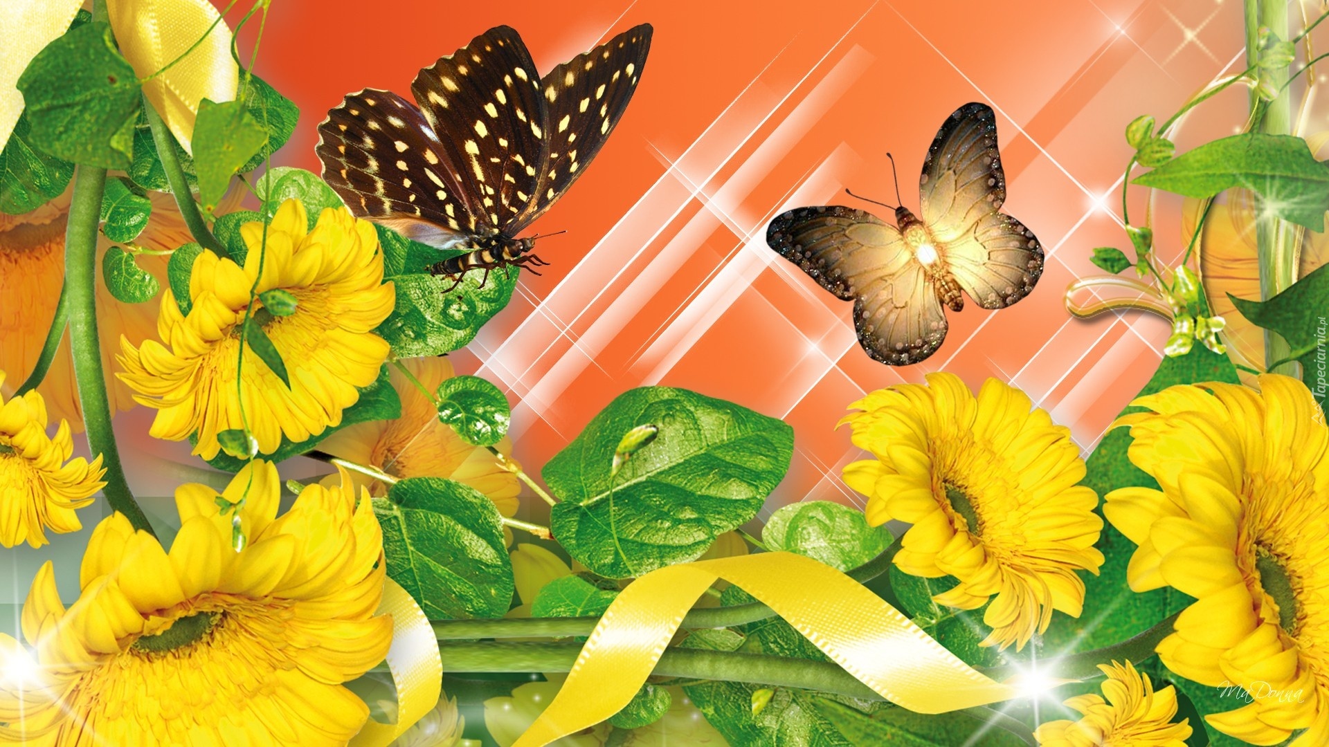 Edytor tapety: Żółte, Kwiaty, Motyle, Grafika, Komputerowa