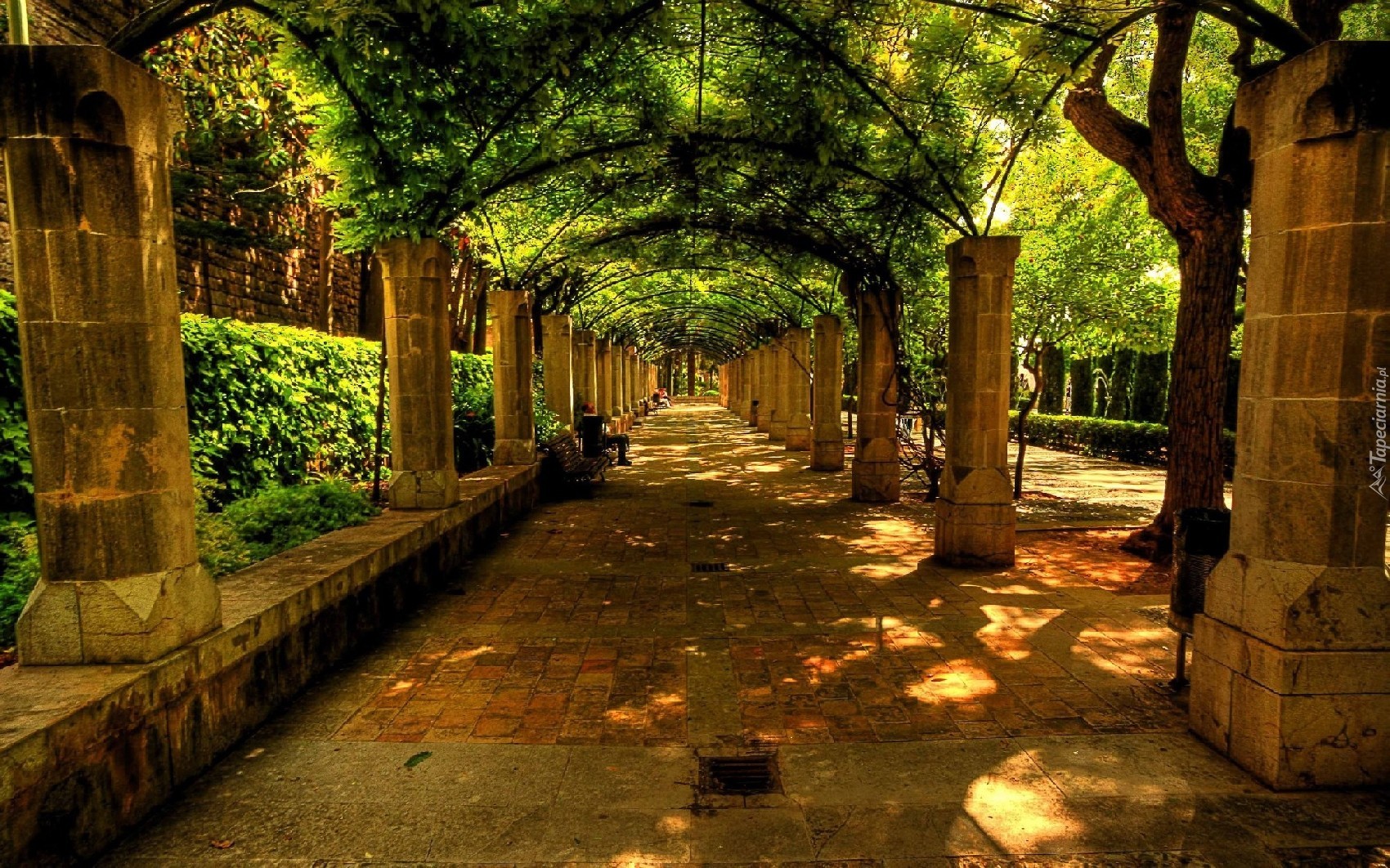 Edytor tapety: Park, Akejka, Ławeczka, Kolumny