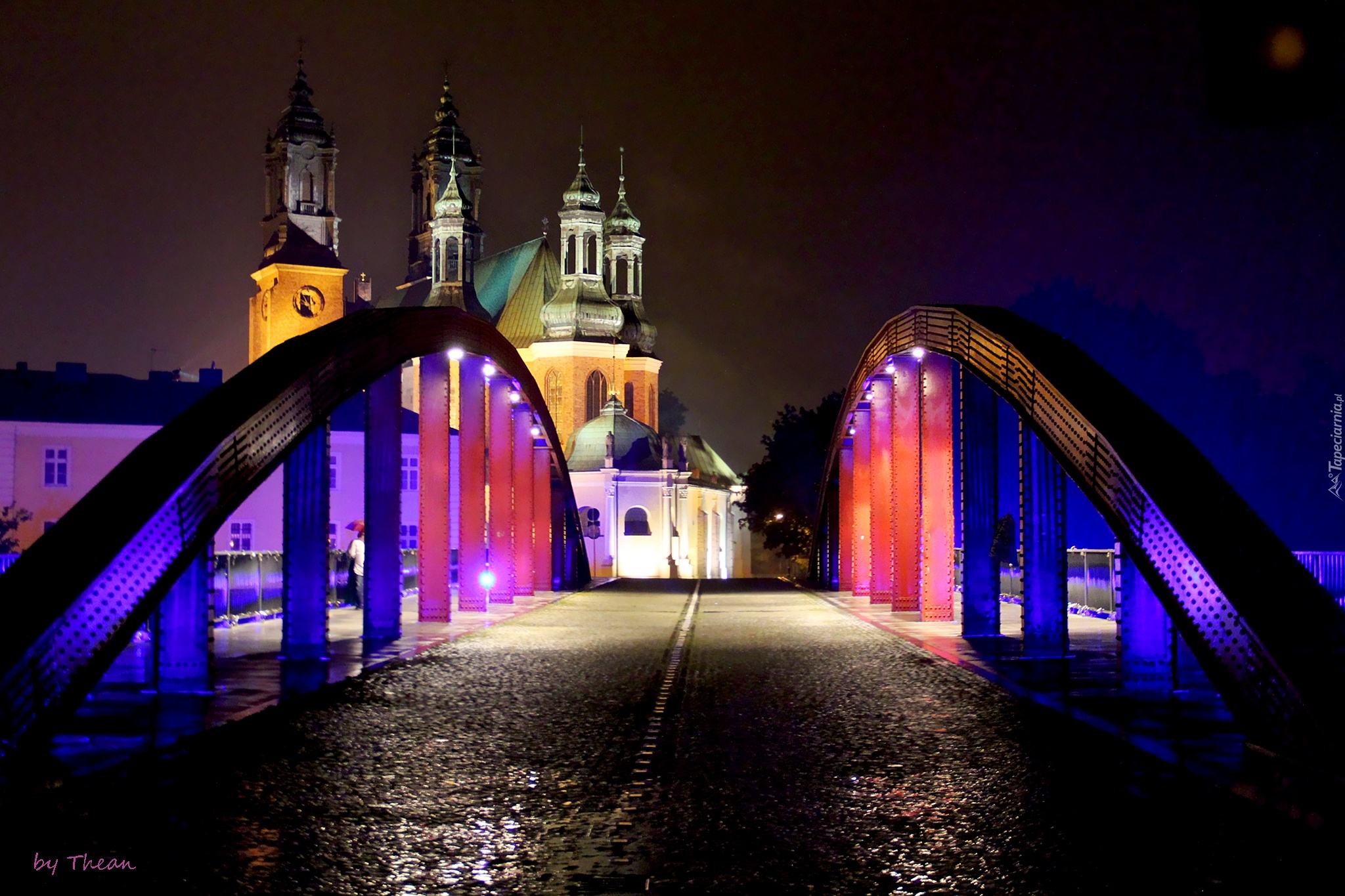 Edytor tapety: Katedra Poznańska, Most Jordana, Noc, Poznań