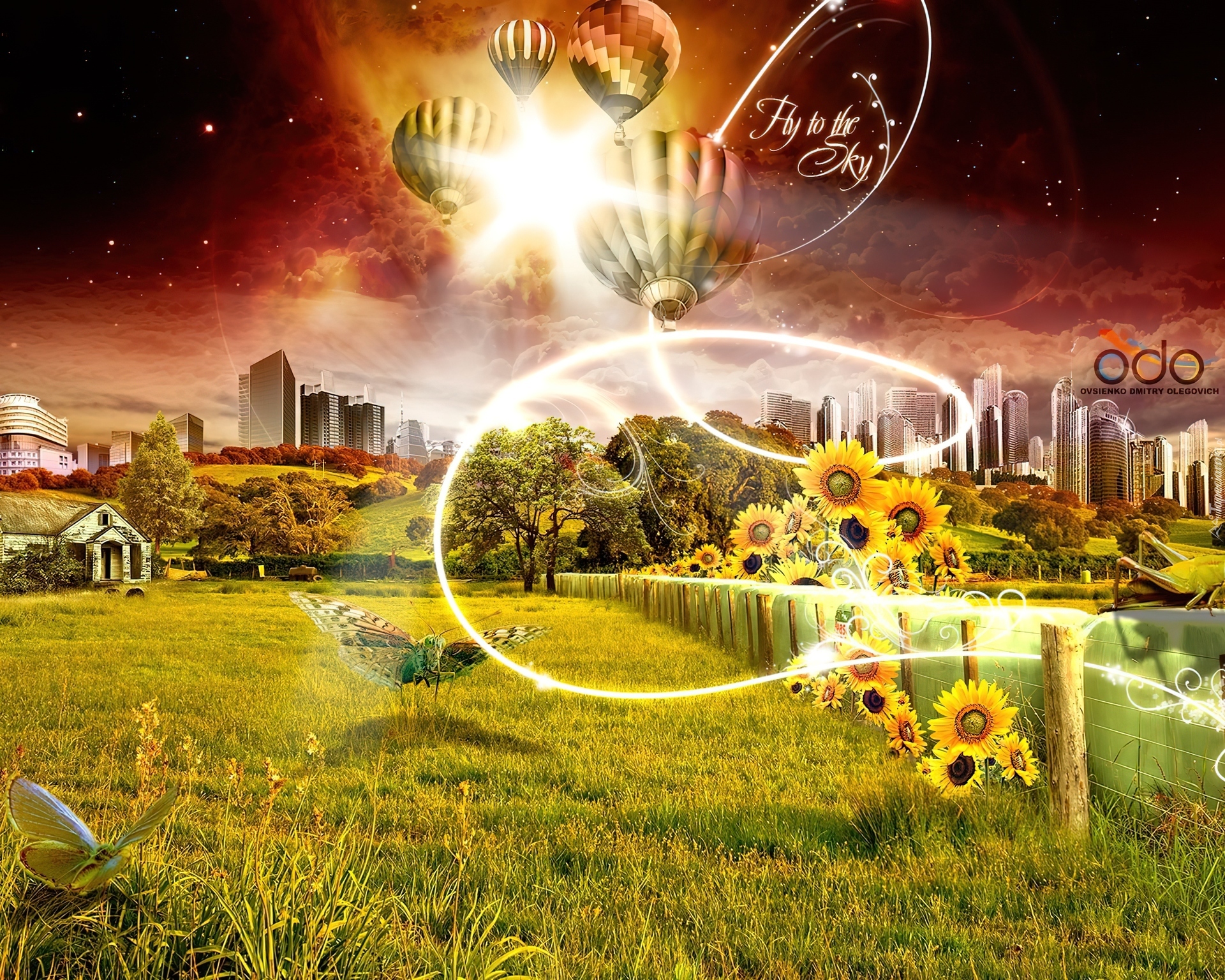 Edytor tapety: Słoneczniki, Motyle, Balony