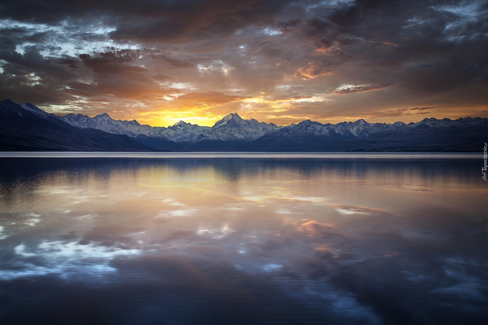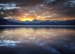 Edytor tapety: Zachód, Słońca, Góry, Tafla, Jeziora
