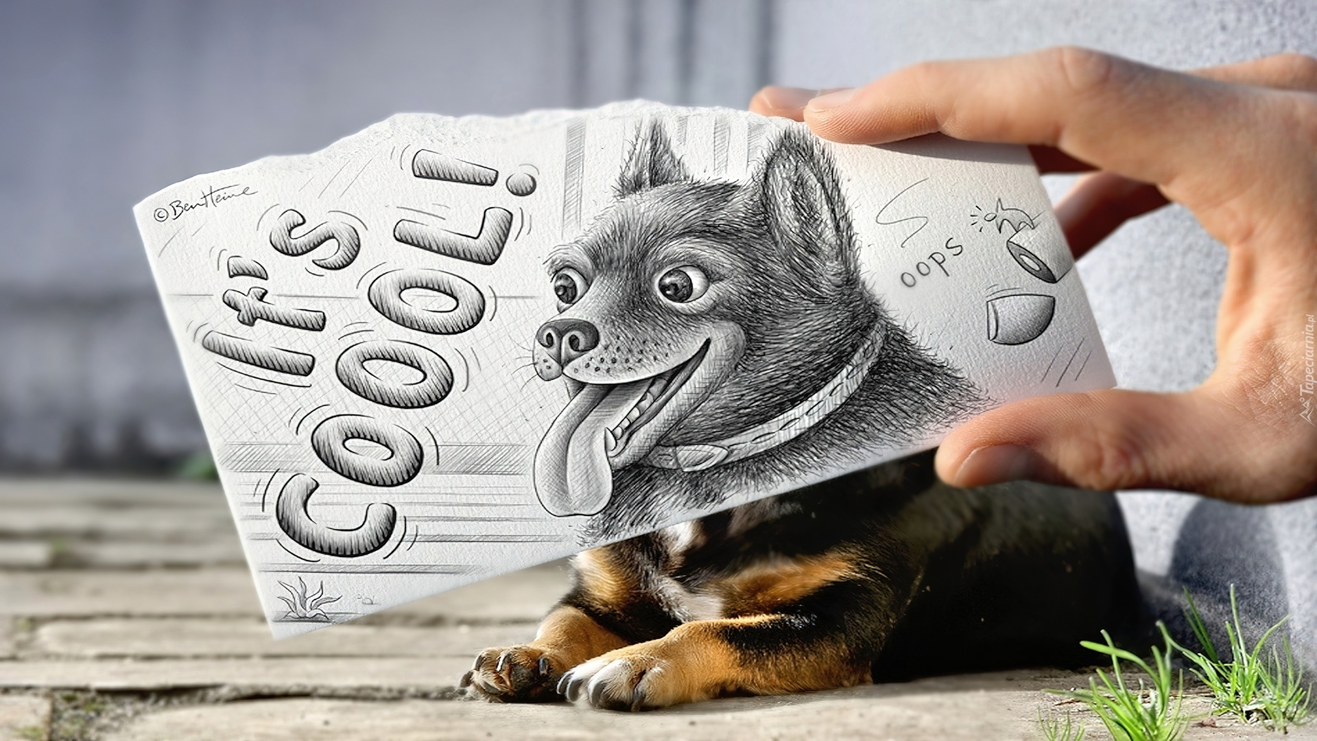 Edytor tapety: Pies, Kartka, Rysunek, Dłoń